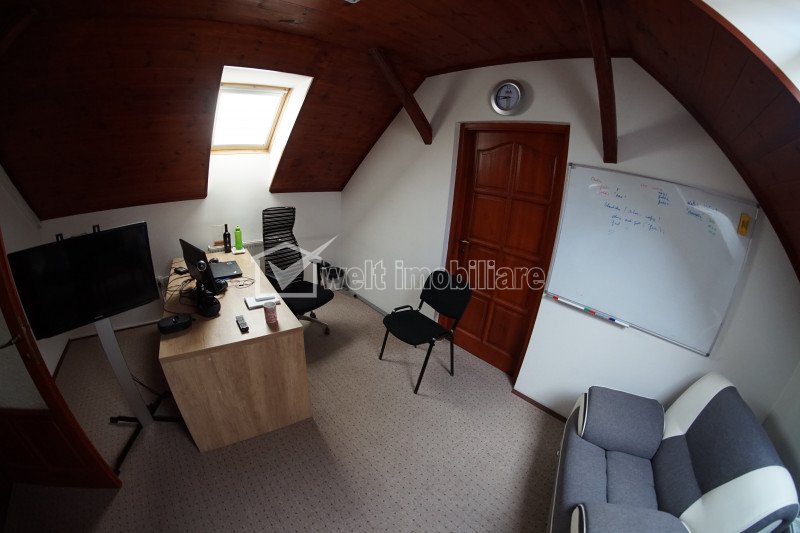 Inchiriem spatiu pentru birouri, 260 mp, central Cluj-Napoca, Centru 7 camere • 260 m2 pret chirie 2.000 €/luna 8 € /m2 + 9 + 6 Inchiriat Caracteristici Tip spatiu Birou Suprafata utila 260 m2 Nr. incaperi 7 Bai 3 Terase 1 Nr. parcari -- Nr. garaje -- Tip imobil -- Clasa birouri -- Etaj Regim de inaltime M Constructie din Caramida Anul constructiei -- Sup. construita 312 m2 Suprafata curte -- Descrierea spatiului Inchiriem casa zona centrala in apropiere de Camera de Comert si Industrie Cluj. Suprafata utila este de 260 mp si este compartimentata in 7 incaperi. Regim inaltime P+M. Parter: 3 birouri, bucatarie, 2 bai. Mansarda: un open space plus 2 birouri, baie si spatiu depozitare. Se preteaza pentru o firma IT, poate acomoda minim 20 persoane. Pret negociabil. ID Proprietate - P8657 Utilitati Utilitati generale: Electricitate, Apa, Gaz, CanalizareSistem de incalzire: Centrala termica Finisaje: Podele (Parchet), Stare interior (Buna) Dotari: Spatiu depozitare Vecinatati si puncte de interes in zona Camera de Comert si Industrie Amenajare strazi (Asfaltate), Iluminat stradal, Mijloace de transport in comun Numar vizualizari: 3786 Actualizat: 2019-03-29 13:08:57