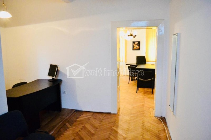 Spatiu de birou, 40mp Central, zona Dorobanti complet mobilat Cluj-Napoca, Centru 2 camere • 40 m2 pret chirie negociabil 550 €/luna 480 €/luna 12 € /m2 + 2 Inchiriat Caracteristici Tip spatiu Birou Suprafata utila 40 m2 Nr. incaperi 2 Bai 1 Terase 1 Nr. parcari -- Nr. garaje -- Tip imobil bloc Clasa birouri -- Etaj 1 Constructie din Caramida Anul constructiei 1990 Sup. construita 45 m2 Suprafata curte -- Descrierea spatiului Va propun un spatiu de inchiriat in zona Dorobanti in suprafata de 40 mp utili. Spatiul este compartimentant in doua incaperi, plus grup sanitar, balcon. Se preda mobilat. Pretabilpentru activitati de tip office, cabinet notarial, avocat, consultant financiar etc. ID Proprietate - P19293 Utilitati Utilitati generale: Electricitate, Apa, Gaz, CanalizareSistem de incalzire: Sobe de teracotaClimatizare: Aer conditionat Finisaje: Izolatii termice (Bloc izolat termic), Podele (Parchet), Ferestre cu geam termopan (PVC), Iluminat (Lampi, Lumina naturala) Dotari: Contorizare (Apometre, Contor caldura, Contor gaz), Dotari imobil (Interfon) Vecinatati si puncte de interes in zona Tribunalul Cluj,Direcția Regională a Finanțelor Publice Cluj-Napoca Numar vizualizari: 2415 Actualizat: 2020-01-13 14:14:08