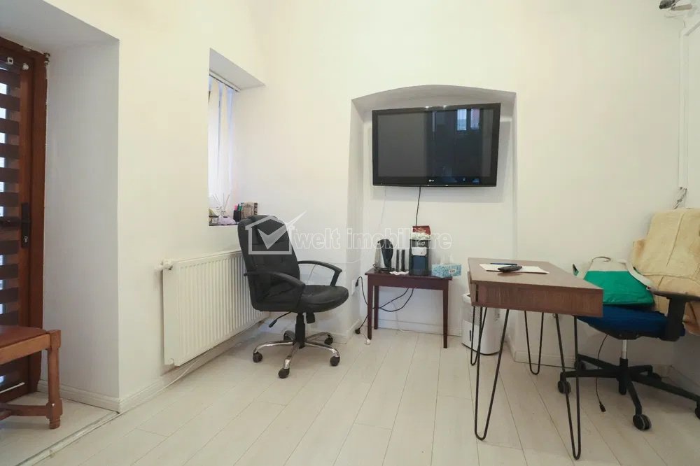 Spatiu birou Centru, 2 incaperi si baie Cluj-Napoca, Centru 2 camere • 50 m2 pret chirie 600 €/luna 12 € /m2 + 4 Caracteristici Tip spatiu Birou Suprafata utila 50 m2 Nr. incaperi 2 Bai 1 Terase -- Nr. parcari -- Nr. garaje -- Tip imobil casa/vila Clasa birouri -- Etaj parter/1 Regim de inaltime 1E Constructie din Caramida Anul constructiei -- Sup. construita 60 m2 Suprafata curte -- Disponibilitate imediat Descrierea spatiului Welt imobiliare va ofera spre inchiriere un apartament in zona Centrala pentru birou. Acesta are o suprafata de aproximativ 50 mp si este compus din 2 camere si 1 baie, are intrări separate pentru ambele camere, amenajat cu mobilier pt birou, posibilitate de predare imediată, curte interioară, terasă in fața apartamentului. Pentru alte detalii si vizionari, nu ezitati sa ne contactati! ID Proprietate - P50199 Utilitati Utilitati generale: Electricitate, Apa, Gaz, CanalizareSistem de incalzire: Centrala termica, Calorifere Finisaje: Podele (Parchet, Gresie), Ferestre cu geam termopan (PVC) Dotari: Contorizare (Apometre, Contor gaz) Numar vizualizari: 1299 Actualizat: 2025-10-21 16:29:54