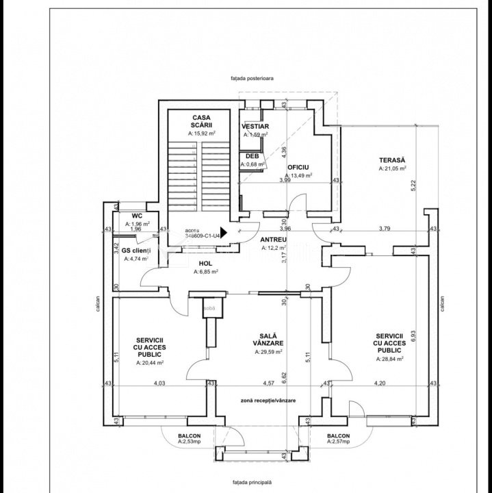 Spatiu activitati de birou, 4 incaperi 150mp, terasa si curte, pta Cipariu Cluj-Napoca, Centru 4 camere • 150 m2 pret chirie 2.300 €/luna 15 € /m2 + 11 + 8 Inchiriat Caracteristici Tip spatiu Birou Suprafata utila 150 m2 Nr. incaperi 4 Bai 2 Terase 1 Nr. parcari -- Nr. garaje -- Tip imobil casa/vila Clasa birouri A Etaj 1/2 Regim de inaltime 2E Constructie din Caramida Anul constructiei -- Sup. construita 180 m2 Suprafata curte -- Disponibilitate imediat Descrierea spatiului Spatiu de lucru deosebit, situat in zona centrala langa piata Cipariu, ideal pentru activitati creative sau de birou care se inchiriaza mobilate si utilate complet, asa cum e prezentat in poze. Suprafata de 150mp se compune dupa cum urmeaza: - 3 incaperi spațioase, fiecare cu intrare separată - hol generos, amenajat cu canapea (ideal ca recepție sau zonă de așteptare) - bucatarie complet echipata si loc de luat masa - baie spațioasă - terasă mare, două balcoane și acces la grădina din spatele clădirii. Finisaje de calitate, contorizare separata, centrala proprie si calorifere, Aer Conditionat, sistem de alarma ID Proprietate - P50672 Utilitati Utilitati generale: Electricitate, Apa, Gaz, Canalizare, Cablu TVSistem de incalzire: Centrala termica, CalorifereClimatizare: Aer conditionat Finisaje: Izolatii termice (Bloc izolat termic), Podele (Parchet, Gresie), Iluminat (Exterior cladire, Lumina naturala) Dotari: Contorizare (Partial), Dotari imobil (Interfon), Spatiu verde amenajat Vecinatati si puncte de interes in zona piata Cipariu Numar vizualizari: 988 Actualizat: 2026-03-04 10:10:14