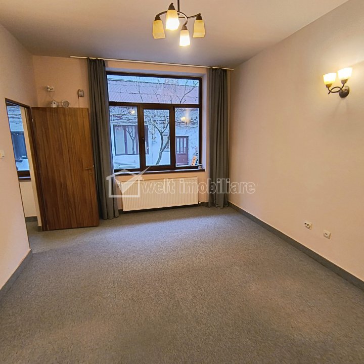 + 5 Caracteristici Tip spatiu Birou Suprafata utila 36 m2 Nr. incaperi 2 Bai 1 Terase -- Nr. parcari -- Nr. garaje -- Tip imobil -- Clasa birouri -- Etaj parter Constructie din Caramida Anul constructiei -- Sup. construita 43 m2 Suprafata curte -- Disponibilitate imediat Descrierea spatiului Welt Imobiliare va propune spre inchiriere un apartament de 2 camere, zona Eroilor, ideal pentru spatiu birou, sediu firma. Apartamentul are o suprafata de 36 mp utili, respectiv 2 camere, pretabile pentru birouri. Spatiul se afla la parter inalt, se inchiriaza nemobilat (cum se vede in poze). Pentru mai multe detalii si vizionari, va asteptam cu drag la sediul nostru central din Cluj-Napoca! ID Proprietate - P53133 Utilitati Utilitati generale: Electricitate, Apa, Gaz, CanalizareSistem de incalzire: Centrala termica Finisaje: Izolatii termice (Exterior), Podele (Gresie), Stare interior (Buna), Ferestre cu geam termopan (PVC) Dotari: Contorizare (Nemobilat, Apometre, Contor gaz) Numar vizualizari: 142 Actualizat: 2026-02-10 09:00:45