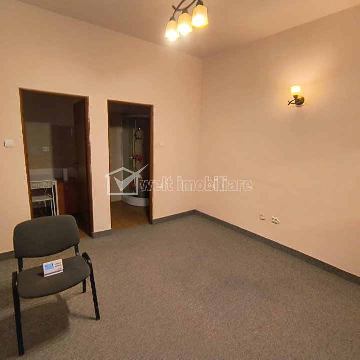Spatiu pentru sediu firma, birou, Centru Cluj-Napoca, Centru 2 camere • 36 m2 pret chirie 500 €/luna 14 € /m2 + 5 Caracteristici Tip spatiu Birou Suprafata utila 36 m2 Nr. incaperi 2 Bai 1 Terase -- Nr. parcari -- Nr. garaje -- Tip imobil -- Clasa birouri -- Etaj parter Constructie din Caramida Anul constructiei -- Sup. construita 43 m2 Suprafata curte -- Disponibilitate imediat Descrierea spatiului Welt Imobiliare va propune spre inchiriere un apartament de 2 camere, zona Eroilor, ideal pentru spatiu birou, sediu firma. Apartamentul are o suprafata de 36 mp utili, respectiv 2 camere, pretabile pentru birouri. Spatiul se afla la parter inalt, se inchiriaza nemobilat (cum se vede in poze). Pentru mai multe detalii si vizionari, va asteptam cu drag la sediul nostru central din Cluj-Napoca! ID Proprietate - P53133 Utilitati Utilitati generale: Electricitate, Apa, Gaz, CanalizareSistem de incalzire: Centrala termica Finisaje: Izolatii termice (Exterior), Podele (Gresie), Stare interior (Buna), Ferestre cu geam termopan (PVC) Dotari: Contorizare (Nemobilat, Apometre, Contor gaz) Numar vizualizari: 142 Actualizat: 2026-02-10 09:00:45