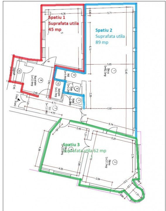+ 8 + 5 Caracteristici Tip spatiu Birou Suprafata utila 45 m2 Nr. incaperi 2 Bai -- Terase -- Nr. parcari -- Nr. garaje -- Tip imobil casa/vila Clasa birouri -- Etaj 2/2 Regim de inaltime 2E Constructie din -- Anul constructiei -- Sup. construita 54 m2 Suprafata curte -- Disponibilitate imediat Descrierea spatiului Welt Imobiliare va prezinta spre inchiriere un spatiu pentru birouri situat intr-o cladire monument istoric, in centrul orasului, zona Regele Ferdinand. Se ofera spre inchiriere 1 incapere + 1 bucatarie si baie de 45 mp, compus conform schitei, cu posibilitate de extindere. Spatiul face parte dintr-o suprafata totala de 230 mp, compartimentata in 4 incaperi, 2 bai, bucatarie, hol si balcon. Beneficii: - Acces individual din hol comun - Usa proprie pentru fiecare unitate - Separare si izolare fonica intre spatii Compartimentarea se poate adapta in functie de cerintele chiriasului. Imobilul dispune de incalzire centrala pe gaz, sistem de alarma incendiu si antiefractie. Contactati-ne pentru detalii sau vizionare! ID Proprietate - P54415 Utilitati Utilitati generale: Electricitate, Gaz, CanalizareSistem de incalzire: Centrala termica, Calorifere Finisaje: Podele (Parchet, Gresie) Dotari: Contorizare (Nemobilat) Numar vizualizari: 24 Actualizat: 2026-04-07 12:50:25
