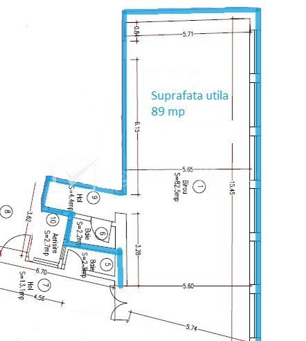 + 6 + 3 Caracteristici Tip spatiu Birou Suprafata utila 89 m2 Nr. incaperi 1 Bai 1 Terase -- Nr. parcari -- Nr. garaje -- Tip imobil casa/vila Clasa birouri -- Etaj 2/2 Regim de inaltime 2E Constructie din -- Anul constructiei -- Sup. construita 106 m2 Suprafata curte -- Disponibilitate imediat Descrierea spatiului Welt Imobiliare va prezinta spre inchiriere un spatiu pentru birouri situat intr-o cladire monument istoric, in centrul orasului, zona Regele Ferdinand. Se ofera spre inchiriere o incapere tip open space, baie si hol de 89 mp, compus conform schitei, cu posibilitate de extindere. Spatiul face parte dintr-o suprafata totala de 230 mp, compartimentata in 4 incaperi, 2 bai, bucatarie, hol si balcon. Beneficii: - Acces individual din hol comun - Usa proprie pentru fiecare unitate - Separare si izolare fonica intre spatii Compartimentarea se poate adapta in functie de cerintele chiriasului. Imobilul dispune de incalzire centrala pe gaz, sistem de alarma incendiu si antiefractie. Contactati-ne pentru detalii sau vizionare! ID Proprietate - P54418 Utilitati Utilitati generale: Electricitate, Gaz, CanalizareSistem de incalzire: Centrala termica, Calorifere Finisaje: Podele (Parchet, Gresie) Dotari: Contorizare (Nemobilat) Numar vizualizari: 23 Actualizat: 2026-04-07 12:51:41