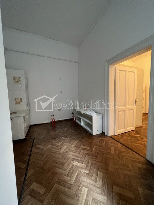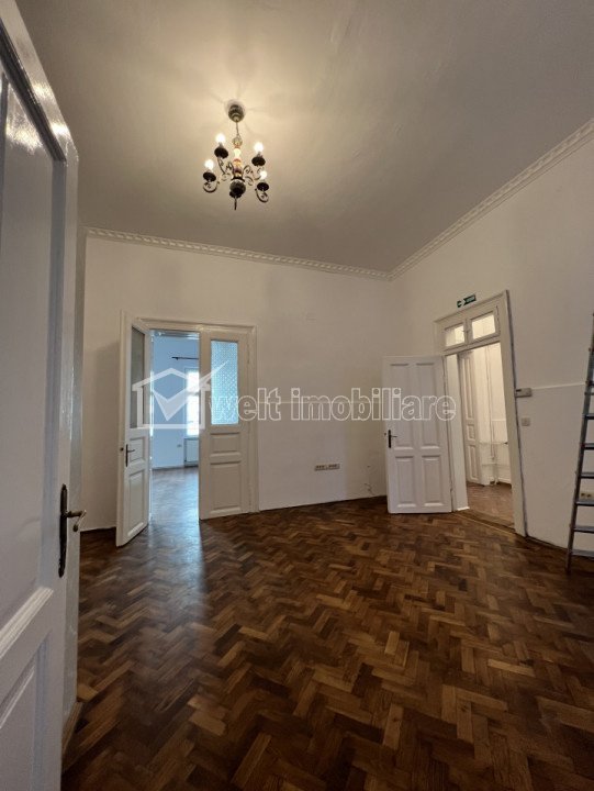 Spatiu 104mp in centru, 4 încăperi, 2 băi, lângă cinema Florin Piersic Cluj-Napoca, Centru 4 camere • 104 m2 pret chirie negociabil 1.070 €/luna 10 € /m2 + 9 + 6 Caracteristici Tip spatiu Spatiu Comercial Suprafata utila 104 m2 Nr. incaperi 4 Bai 2 Terase 1 Nr. parcari -- Nr. garaje -- Tip imobil casa/vila Etaj parter/2 Regim de inaltime 2E Constructie din Caramida Anul constructiei -- Sup. construita 115 m2 Suprafata curte 20 m2 Disponibilitate imediat Descrierea spatiului Va prezentam spre inchiriere spatiu comercial 104mp, situat in Centru, peste drum de cinema Florin Piersic, in curte interioara dar cu acces foarte usor Este compus din 3 incaperi spatioase si luminoase, hol de intrare, 2 grupuri sanitare, oficiu, zona de receptie. Are 2 intrari separate, 4 geamuri spre canalul Morii, centrala proprie si calorifere. Destinatie comerciala in Cartea Funciara, este potrivit pentru salon, activitati medicale, sediu firma etc. Exista scurgere si robinet de apa in fiecare incapere. Disponibil imediat. Suplimentar se poate inchiria spatiu de depozitare in pivnita (50mp) sau pod (25mp). ID Proprietate - P54859 Utilitati Utilitati generale: Electricitate, Apa, Gaz, Canalizare, Cablu TVSistem de incalzire: Centrala termica, Calorifere Finisaje: Podele (Parchet, Gresie), Ferestre cu geam termopan (Lemn), Iluminat (Lampi, Spoturi, Aplice, Exterior cladire, Lumina naturala) Dotari: Contorizare (Nemobilat, Apometre, Contor gaz), Dotari imobil (Curte) Vecinatati si puncte de interes in zona Cinema Florin Piersic Numar vizualizari: 24 Actualizat: 2026-04-28 09:33:24