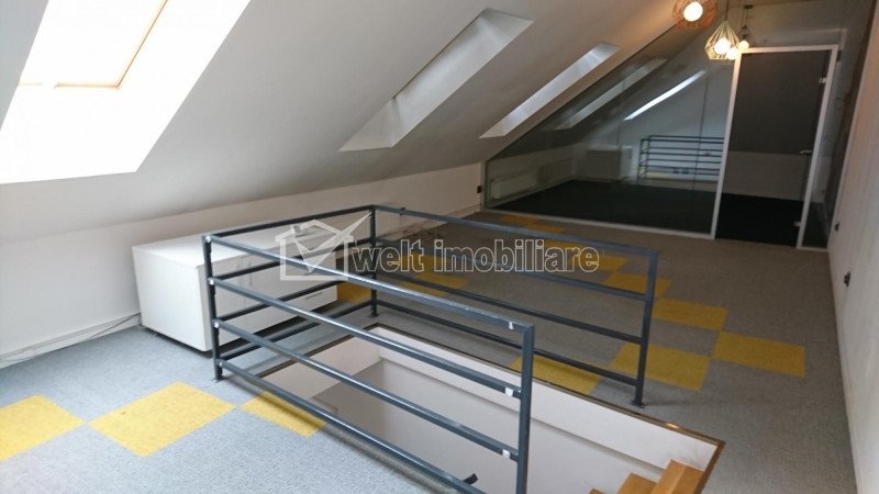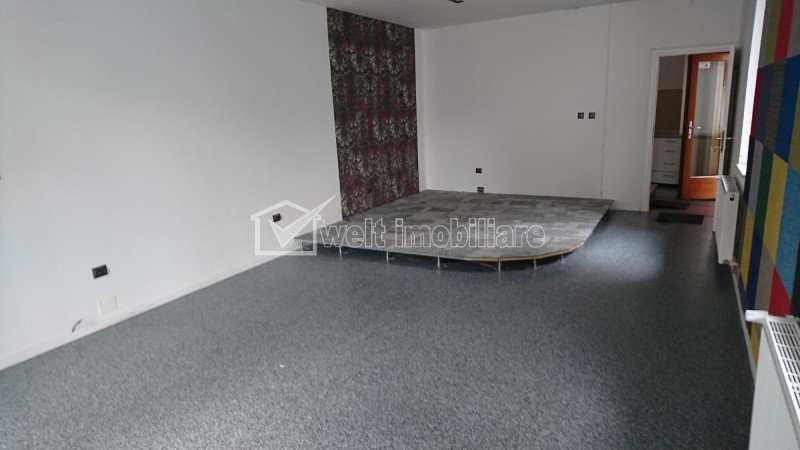 Spatiu de inchiriat 110 mp, Zona Piata Cipariu, ideal pentru showroom, birouri. Cluj-Napoca, Gheorgheni 7 camere • 110 m2 pret chirie 1.210 €/luna 11 € /m2 + 5 Inchiriat Caracteristici Tip spatiu Birou Suprafata utila 110 m2 Nr. incaperi 7 Bai 1 Terase -- Nr. parcari -- Nr. garaje -- Tip imobil casa/vila Clasa birouri -- Etaj Constructie din Beton Anul constructiei -- Sup. construita 50 m2 Suprafata curte 40 m2 Descrierea spatiului Va propun spre vizionare un spatiu situat in zona Piata Cipariu, in suprafata de 110 mp. Acesta este dispus pe 3 niveluri, cu open space de tip showroom+oficiu+baie+vestiar la parter, birouri separate in sticla la mansarda si doua spatii de depozitare in subsol. Terasa exterioara acoperita/loc pt fumat, curte de 40 mp cu acces auto 7t. Ideal pentru orice activitate de birou. ID Proprietate - P18595 Utilitati Utilitati generale: Electricitate, Apa, CanalizareSistem de incalzire: Centrala termicaClimatizare: Aer conditionat Finisaje: Podele (Parchet, Mocheta), Ferestre cu geam termopan (PVC), Iluminat (Spoturi) Dotari: Contorizare (Apometre, Contor caldura, Contor gaz), Dotari imobil (Curte), Spatiu depozitare Vecinatati si puncte de interes in zona Piata Cipariu Numar vizualizari: 2578 Actualizat: 2019-10-07 11:19:14