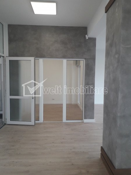 Spatiu birou 130mp, Marasti, zona Kaufland Cluj-Napoca, Marasti 1 camera • 130 m2 pret chirie 1.000 €/luna 8 € /m2 + 3 Inchiriat Caracteristici Tip spatiu Birou Suprafata utila 130 m2 Nr. incaperi 1 Bai 1 Terase -- Nr. parcari -- Nr. garaje -- Tip imobil -- Clasa birouri A Etaj 1/2 Regim de inaltime D+P+2E Constructie din Caramida Anul constructiei -- Sup. construita 130 m2 Suprafata curte -- Descrierea spatiului Inchiriere spatiu birou, recent renovat, de 130mp in Marasti. Se preteaza perfect pentru birouri IT, birouri contabilitate, cabinete medicale etc. Spatiu este tip open space si are un separeu pentru conferinte, spatiu de depozitare si/ sau zona recreere. Recent renovat cu parchet din lem stratificat, AC, iluminat led si geamuri termopan. Pentru detalii va stam la dispozitie cu drag. ID Proprietate - P18734 Utilitati Utilitati generale: Electricitate, Curent trifazic, Apa, GazSistem de incalzire: Centrala termica, CalorifereClimatizare: Aer conditionat Finisaje: Podele (Parchet), Ferestre cu geam termopan (PVC), Iluminat (Spoturi, Lumina naturala) Vecinatati si puncte de interes in zona Piata Marasti, Kaufland Numar vizualizari: 2513 Actualizat: 2019-11-07 09:54:06