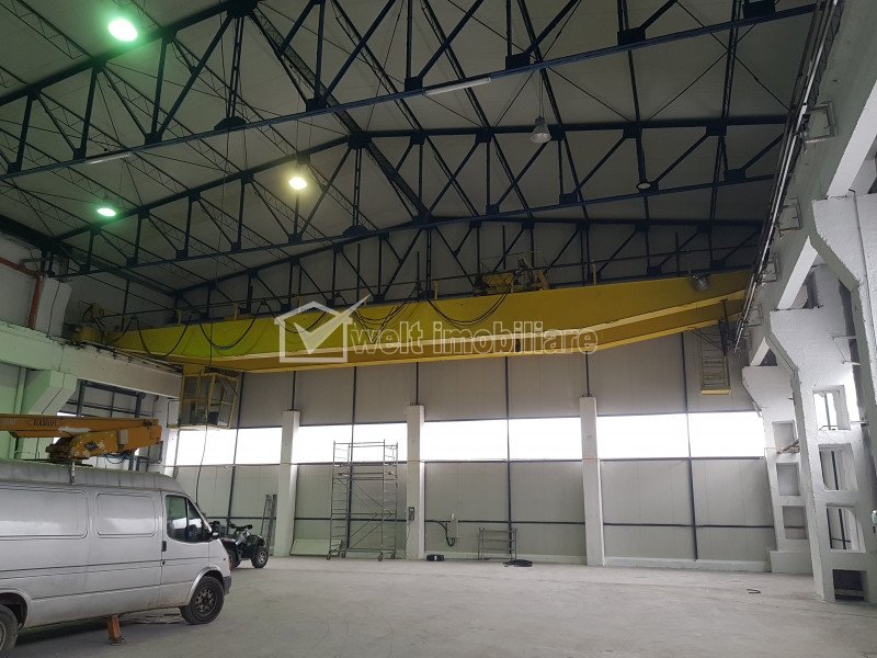 Caracteristici Tip spatiu Spatiu Industrial Suprafata utila 1250 m2 Nr. incaperi 1 Grupuri sanitare 2 Nr. parcari 2 Nr. garaje -- Tip imobil depozit Inaltime spatiu -- Etaj Constructie din -- Anul constructiei -- Sup. construita 1250 m2 Suprafata curte -- Descrierea spatiului De inchiriat spatiu industrial in suprafata de 1250mp situat in Someseni zona Aeroport. Spatiul este incalzit cu aeroterme pe gaz, are inaltime utila de 6m, rampa fixa si rampa de acces drive in. Deasemeni in hala este un pod rulant cu capacitate de 10to, trebuie iscirizat. In interiorul halei sunt compartimentate 2 birouri si grupuri sanitare. Toate utilitatile disponibile, acces TIR in curte si la rampa halei. Suplimentar se percepe un service charge de 0.70eur/mp + TVA ID Proprietate - P21611 Utilitati Utilitati generale: Electricitate, Curent trifazic, Apa, Gaz, Canalizare Finisaje: Stare interior (Buna), Ferestre cu geam termopan (PVC), Iluminat (Lampi, Spoturi, Aplice, Exterior cladire, Lumina naturala) Vecinatati si puncte de interes in zona Aeroportul International Cluj, zona industriala Someseni Amenajare strazi (Asfaltate), Iluminat stradal, Mijloace de transport in comun Numar vizualizari: 2560 Actualizat: 2020-08-25 10:34:43