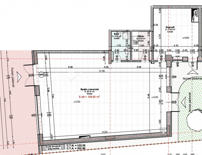Caracteristici Tip spatiu Spatiu Comercial Suprafata utila 109 m2 Nr. incaperi 2 Bai 1 Terase -- Nr. parcari 2 Nr. garaje -- Tip imobil bloc Etaj parter/4 Regim de inaltime D+P+4E Constructie din Beton Anul constructiei -- Sup. construita 133 m2 Suprafata curte -- Disponibilitate imediat Descrierea spatiului Spatiul se afla la parterul unui imobil nou, recent construit, in cartierul Someseni. ID Proprietate - P5022 Utilitati Utilitati generale: Electricitate, Apa, Gaz, CanalizareSistem de incalzire: Centrala termica, Calorifere Finisaje: Izolatii termice (Exterior), Podele (Parchet, Gresie), Ferestre cu geam termopan (PVC), Iluminat (Spoturi, Aplice) Dotari: Contorizare (Apometre, Contor gaz) Numar vizualizari: 784 Actualizat: 2023-08-28 12:55:00