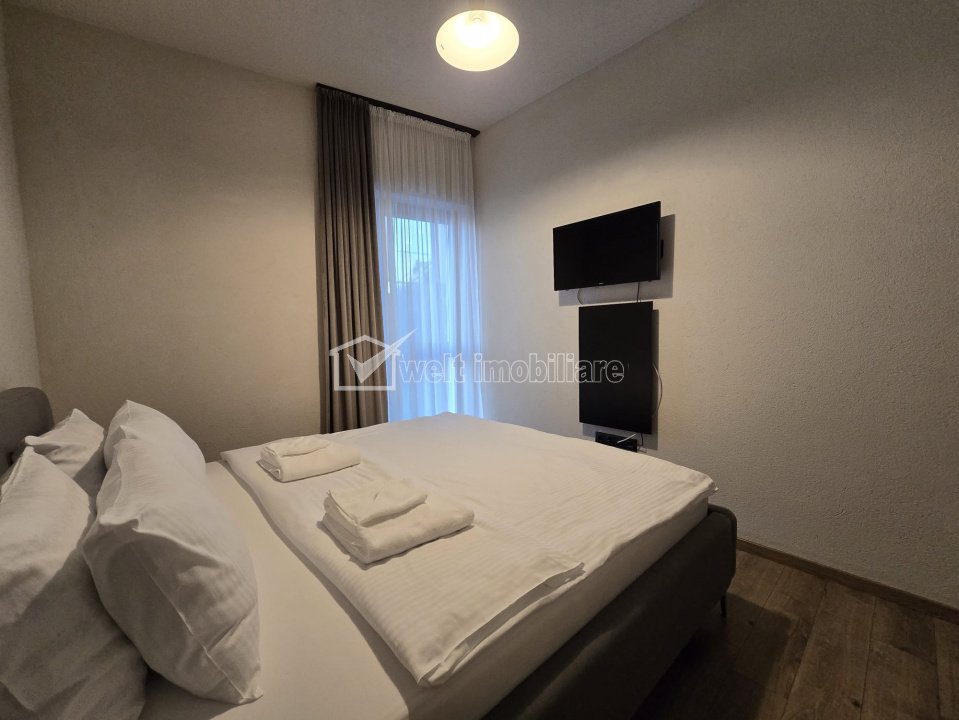 Caractéristiques Type de bien Appartement Non. Chambres 2 Non. cuisines 1 Non. salles de bains 1 Le stationnement oui Surface construite 54 m2 Surface utile 45 m2 Compartiments Semidecomandat Confort Marit Etage 3/5 Construit avec Brique Description de l'appartement Welt Imobiliare propose à la location un appartement moderne et élégant, situé au cœur de la rue Somesului, dans un immeuble neuf de 5 étages. D'une superficie de 45 m², l'appartement allie design contemporain et fonctionnalité, ce qui en fait le choix idéal pour ceux qui recherchent confort et accès immédiat à toutes les commodités de la ville. Composition : - Séjour ouvert avec cuisine entièrement meublée et équipée - Chambre double - Salle de bain moderne aux finitions de qualité Équipements et prestations inclus dans le prix : - Chauffage central et chauffage au sol - Cuisine entièrement équipée (vaisselle, couverts, micro-ondes, réfrigérateur, plaques électriques, four électrique encastré, machine à expresso Nespresso) - Draps et serviettes - Ménage hebdomadaire inclus dans le prix de la location à une date convenue d'un commun accord - Place de parking souterrain (accès par ascenseur) - Internet Wi-Fi haut débit (dans l'appartement et les parties communes) - Smart TV dans le séjour - Sèche-cheveux, fer et planche à repasser, chaussons - Vidéosurveillance dans les parties communes (intérieures et extérieures) et dans les parkings - Accès sécurisé avec Yale Smart (code et carte) L'emplacement ultra-central est complété par des restaurants et des terrasses situés à proximité immédiate, notamment au rez-de-chaussée de l'appart'hôtel, offrant confort et exclusivité. Cet appartement représente une opportunité rare sur le marché, idéale pour ceux qui recherchent un style de vie haut de gamme, avec tout le confort et les avantages du centre-ville. Pour plus de détails ou pour planifier une visite, l'équipe de Welt Imobiliare se fera un plaisir de vous aider. ID de la propriété - P49942 Utilités, Finissages Utilités générales: Électricité, Eau, Gaz, Evacuation des eaux uséesSystème chauffage Chauffage, Chauffage par le plancherFinissages Parquet, Grès, Faïence, LavableEquipements Compteurs gaz Nombre de vues: 1923