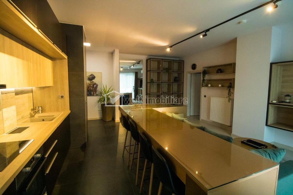 Appartement 2 chambres à louer dans Cluj-napoca, zone Centru Cluj-Napoca, Centru 2 chambres • 65 m2 • 1 salle de bain • étage 4/6 • decomandatmobilat lux prix loyer 1 100 €/mois + 7 + 4 Louer Caractéristiques Type de bien Appartement Non. Chambres 2 Non. cuisines 1 Non. salles de bains 1 Non. balcons 1 Le stationnement oui Surface construite 82 m2 Surface utile 65 m2 Compartiments Decomandat Confort Marit Etage 4/6 Construit avec Ciment Description de l'appartement Appartement moderne et spacieux à louer situé en plein centre-ville, à proximité de NTT Data et du Bosch Engineering Center. D'une superficie de 65 m², il comprend une chambre avec un lit double, une salle de bains, un salon et une cuisine. De plus, le bien dispose d'une grande terrasse propice à la détente et d'une place de parking souterrain. L'appartement est loué entièrement meublé et équipé, avec électroménager, vaisselle, télévision, climatisation, système d'alarme, etc. L'emplacement est très proche du centre, au calme, dans un immeuble neuf. ID de la propriété - P50165 Utilités, Finissages Utilités générales: Électricité, Eau, Evacuation des eaux usées, TV CâbleSystème chauffage Chauffage, Chauffage par le plancherClimatisation ConditionnementFinissages Parquet, Lavable, Portes intérieures Nombre de vues: 810