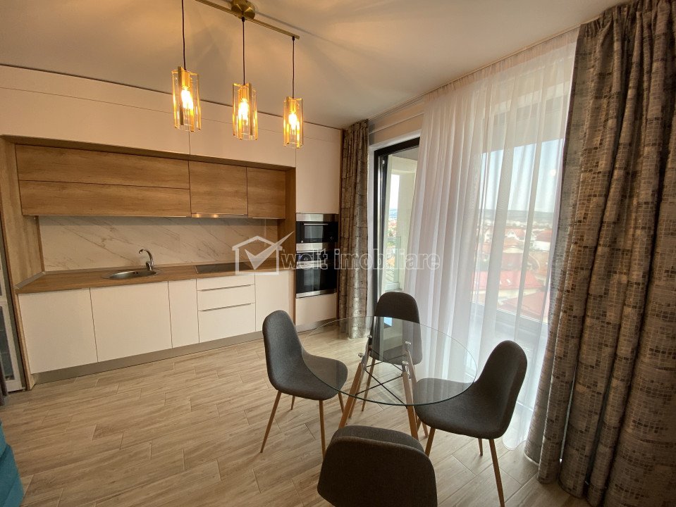 Caractéristiques Type de bien Appartement Non. Chambres 2 Non. cuisines 1 Non. salles de bains 1 Nombre de terrasses 1 Le stationnement oui Surface construite 64 m2 Surface utile 52 m2 Compartiments Semidecomandat Confort Marit Etage 5/6 Construit avec Brique Construction 2020 Description de l'appartement Nous proposons à la location un appartement 2 pièces jumelé de luxe dans un nouveau complexe résidentiel, quartier Brancusi. L'appartement se trouve à 10 minutes à pied de la place Cipariu. Vous trouverez à proximité des restaurants, des commerces, des banques, une école et un marché agroalimentaire. Il est composé comme suit : - Hall d'entrée avec grand dressing avec miroir et portes coulissantes pour vêtements, chaussures et accessoires. - Séjour ouvert avec meubles de rangement, Smart TV, coin repas, petit fauteuil, table basse ; chauffage central. - Cuisine équipée avec lave-vaisselle, réfrigérateur avec congélateur, four électrique, plaques de cuisson, four micro-ondes, hotte aspirante, etc. - Salle de bain avec baignoire et douche, lave-linge et autres rangements. - Chambre avec lit double 180x200, tables de chevet, grand dressing sur toute la surface, avec portes coulissantes et Smart TV. - Grande terrasse (environ 10 m²) avec vue panoramique. Le loyer comprend également une place de parking dans le parking souterrain de l'immeuble. ID de la propriété - P29059 Utilités, Finissages Utilités générales: Électricité, Eau, Gaz, Evacuation des eaux usées, TV CâbleSystème chauffage Chauffage, Chauffage par le plancherFinissages Parquet, Grès, Faïence, Lavable, Portes intérieuresEquipements Compteurs gaz Nombre de vues: 725