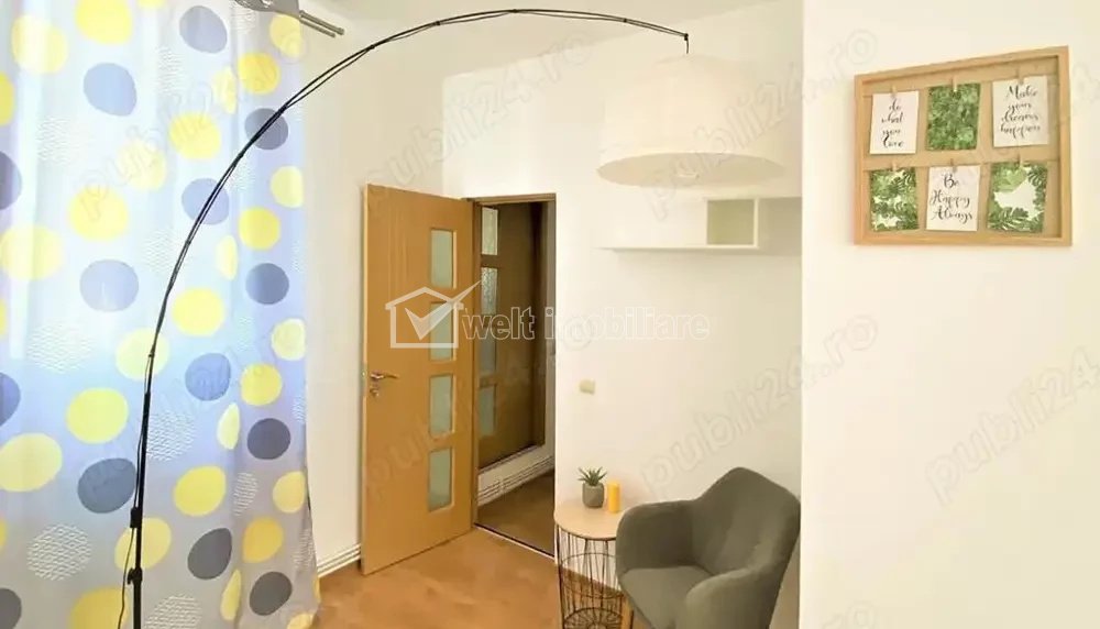 Appartement 2 chambres à louer dans Cluj-napoca, zone Manastur Cluj-Napoca, Manastur 2 chambres • 52 m2 • 2 salles de bains • étage 11/11 • semidecomandatfinisat • mobilat complet prix loyer 550 €/mois + 9 + 6 Louer Caractéristiques Type de bien Appartement Non. Chambres 2 Non. cuisines 1 Non. salles de bains 2 Le stationnement non Surface construite 62 m2 Surface utile 52 m2 Compartiments Semidecomandat Confort 1 Etage 11/11 Description de l'appartement Nous proposons à la location un appartement de 2 pièces, situé dans le quartier Big Manastur, au 11ème étage d'un immeuble avec ascenseur. Caractéristiques: - Surface utilisable : 52 m² - Séjour à aire ouverte avec cuisine - 1 chambre - 2 salles de bain - 11ème étage, avec une belle vue sur la ville - Entièrement meublé et équipé - Climatisation - Propre installation de chauffage L'appartement est idéal pour les personnes seules ou les couples à la recherche d'un espace moderne, lumineux et bien compartimenté, dans un quartier accessible et bien relié aux transports et aux commodités. Pour plus de détails ou pour planifier une visite, veuillez nous contacter. ID de la propriété - P47732 Utilités, Finissages Utilités générales: Électricité, Eau, Gaz, Evacuation des eaux uséesSystème chauffage Chauffage, RadiateursClimatisation ConditionnementFinissages Parquet, Grès, LavableEquipements Compteurs gaz Nombre de vues: 575
