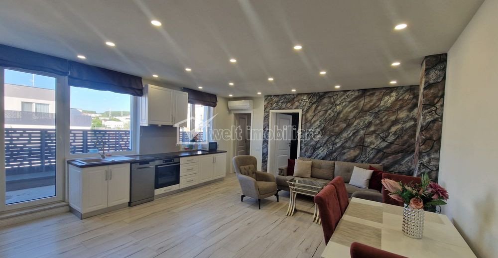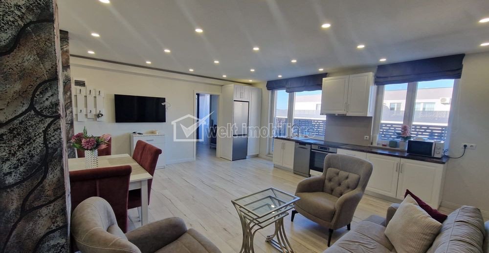 Caractéristiques Type de bien Appartement Non. Chambres 3 Non. cuisines 1 Non. salles de bains 1 Nombre de terrasses 1 Le stationnement oui Surface construite 117 m2 Surface utile 60 m2 Compartiments Semidecomandat Confort Marit Etage 7/7 Construit avec Brique Description de l'appartement Appartement à louer à Floresti, rue Avram Iancu, dans un quartier calme et bien desservi par la ville. L'emplacement offre un accès facile aux commerces et aux arrêts de bus, et le centre commercial Vivo Cluj-Napoca est à seulement 10 minutes. L'appartement est situé au dernier étage (7/7) d'un immeuble neuf, équipé d'un ascenseur et d'un parking souterrain. L'un de ses principaux atouts est sa généreuse terrasse de 45 m², accessible directement depuis toutes les pièces, idéale pour se détendre et profiter du plein air. La surface habitable de 60 m² est efficacement divisée et comprend : - 2 chambres - un séjour ouvert avec cuisine - 1 salle de bain - une grande terrasse avec vue dégagée La cuisine est entièrement équipée avec plaques à induction, four électrique et lave-vaisselle. L'appartement dispose de la climatisation et du chauffage central pour un confort optimal en toute saison. Les animaux ne sont pas admis. Une maison moderne, lumineuse et bien située, idéale pour ceux qui recherchent calme, accessibilité et un espace extérieur généreux. Contactez-nous pour plus d'informations et pour planifier une visite ! ID de la propriété - P48917 Utilités, Finissages Utilités générales: Électricité, Eau, Gaz, Evacuation des eaux uséesSystème chauffage Chauffage, RadiateursClimatisation ConditionnementFinissages Parquet, Grès, Faïence, LavableEquipements Compteurs gaz Nombre de vues: 646