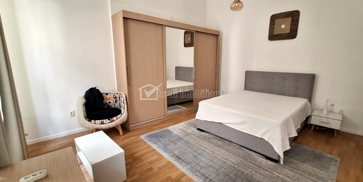 Characteristics Property type Apartment Rooms number 1 Kitchens number 1 Bathrooms number 1 Parking yes Build area 70 m2 Ussefull area 54 sqm Divided Decomandat Comfort Marit Floor ground floor/1 Build with Brick Apartment Description Welt Imobiliare offers you for rent a modern finished and equipped apartment, located in the center of Cluj, in the area of Eroilor Street. It is located on the ground floor of a 1-story building. It was recently renovated and has a parking space in the inner courtyard, with barrier-free access. The 54 square meters are divided as follows: living room, kitchen with dining area, modern finished bathroom and a storage space. The three-meter ceiling height gives you a special feeling of space and freedom. It is rented fully furnished and modernly equipped. Do not miss this rare opportunity to live in a generous, ultra-central space, in a select area of the city! For more details or to schedule a viewing, do not hesitate to contact me. Property ID - P48273 Utilities, Finishings General utilities: Electricity, Water, Gaz, Drain, TV CableHeating system Heating, HeatersFinishings Parquet, Sandstone, Faience, Washable, Interior doorsEquipment Gas meters Views number: 582