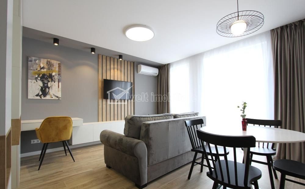 Characteristics Property type Apartment Rooms number 1 Kitchens number 1 Bathrooms number 1 Parking no Build area 50 m2 Ussefull area 40 sqm Divided Semidecomandat Comfort 1 Floor 2/5 Build with Brick Build year 2023 Apartment Description Welt Imobiliare offers for rent a one-room apartment plus sleeping alcove, 40 sq m, located opposite Davinci, Lidl area, Buna Ziua neighborhood. The property stands out for its quality finishes and excellent positioning, being close to public transport and shops, • Spacious 60 sq m terrace, perfect for relaxing or spending time outdoors • Fully furnished and equipped, equipped with TV, modern appliances and quality furniture • Bathroom • Very well maintained property, ready to be inhabited immediately • Quiet and safe area, with easy access to public transport, the bus station is just 1 minute away • Nearby there are supermarkets, pharmacies, restaurants and other important facilities This studio perfectly combines comfort and accessibility, being ideal for an active person, a young couple or a student who wants a modern home in a convenient area of Cluj-Napoca. Property ID - P50846 Utilities, Finishings General utilities: Electricity, Water, Gaz, DrainHeating system Imobil heating, Floor HeatingFinishings Parquet, Sandstone, Faience, Washable Views number: 1096