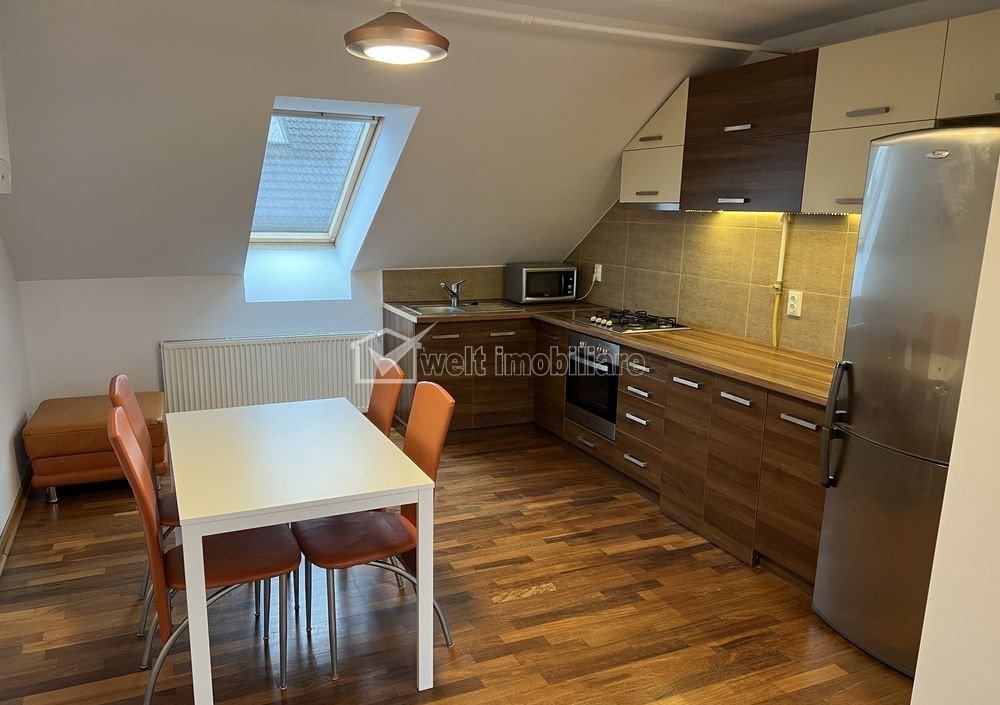 Characteristics Property type Apartment Rooms number 2 Kitchens number 1 Bathrooms number 1 Parking no Build area 78 m2 Ussefull area 65 sqm Divided Semidecomandat Comfort Marit Floor 4/4 Apartment Description We offer for rent a 2-room apartment, located in the Buna Ziua neighborhood of Cluj-Napoca, just a few steps from the bus station. Property details: - Usable area: 65 sq m - Floor: attic (4th floor of 4) - Semi-detached partitioning: - Open-space living room with kitchen - Bedroom - Spacious dressing room - Bathroom Features: - The apartment is rented furnished and equipped - Includes refrigerator, washing machine and air conditioning - Bright and well maintained Advantages: - Easy access to public transportation - Quiet area, close to shops, pharmacies and other facilities - Ideal for a couple or a single person For more details or to schedule a viewing, do not hesitate to contact us. Property ID - P47580 Utilities, Finishings General utilities: Electricity, Water, Gaz, DrainHeating system Heating, HeatersConditioning Air conditioningFinishings Parquet, Sandstone, Faience, WashableEquipment Gas meters Views number: 432