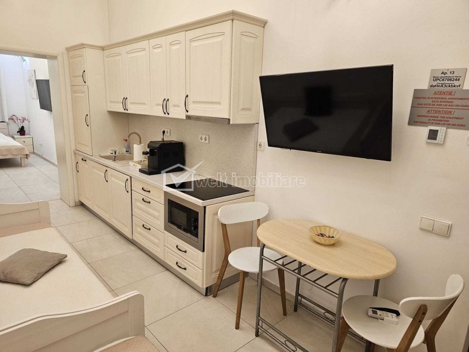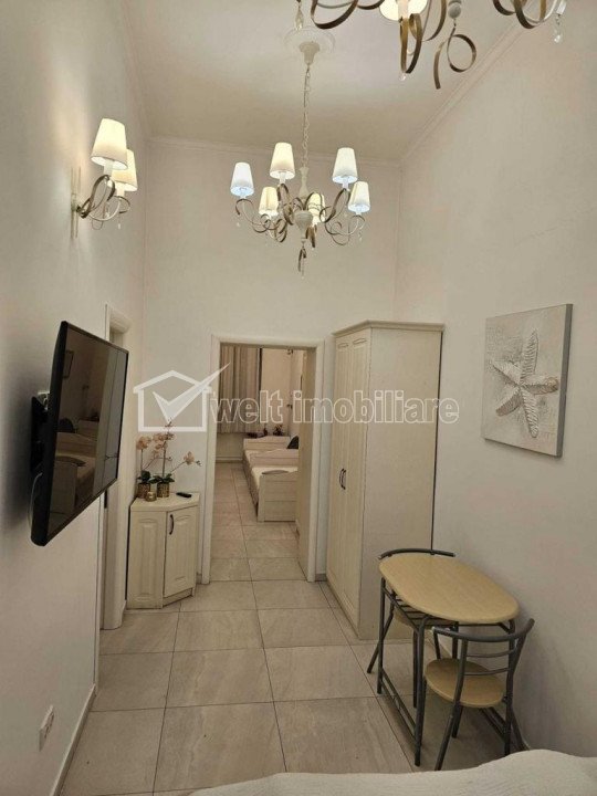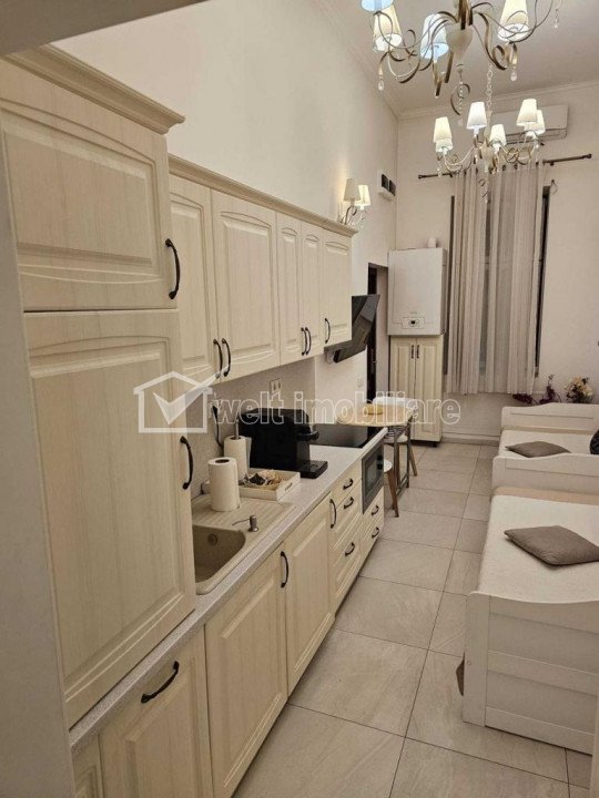 Characteristics Property type Apartment Rooms number 2 Kitchens number 1 Bathrooms number 1 Parking no Build area 42 m2 Ussefull area 35 sqm Divided Semidecomandat Comfort Marit Floor 1 Build with Brick Apartment Description Welt Imobiliare offers for rent an ultra-central apartment, in close proximity to the Faculty of Law, Medicine and Piata Unirii. The apartment is in a historic building with high ceilings. The house is ideal for those who want to live in the city center but still far from its noise. The building is ingeniously divided, including a living room with an open space kitchen, 1 comfortable bedroom and a bathroom. The apartment is available fully furnished and equipped in a modern, captivating design. Don't miss the chance to rent this welcoming and refined space! Contact us today for more details and to schedule a viewing. The apartment is available for rent starting on September 15, 2024. Property ID - P43091 Utilities, Finishings General utilities: Electricity, Water, Gaz, Drain, PhoneHeating system HeatingConditioning Air conditioningFinishings Parquet, Sandstone, Faience, Washable, Interior doors Views number: 763