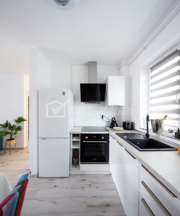 Characteristics Property type Apartment Rooms number 2 Kitchens number 1 Bathrooms number 1 Balconier number 1 Parking yes Build area 68 m2 Ussefull area 57 sqm Divided Semidecomandat Comfort Marit Floor 1/5 Build with Brick Apartment Description We offer for rent an apartment located in the ultra-central area, near McDonald's in Piata Mihai Viteazu. Features: - 1 bedroom with double bed - Spacious living room with sofa bed - Open space kitchen, fully equipped - Air conditioning - Private underground parking, included in the price - Located in an area with quick access to transportation, shops and restaurants The apartment is ideal for people who want comfort and easy access to the city center. For more information or to schedule a viewing, please contact us. Property ID - P47745 Utilities, Finishings General utilities: Electricity, Water, Gaz, DrainHeating system Heating, Floor HeatingConditioning Air conditioningFinishings Parquet, Sandstone, Faience, WashableEquipment Gas meters Views number: 624