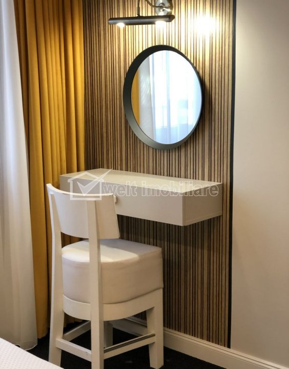 Characteristics Property type Apartment Rooms number 2 Kitchens number 1 Bathrooms number 1 Balconier number 1 Parking yes Build area 72 m2 Ussefull area 54 sqm Divided Semidecomandat Floor ground floor/4 Build with Brick Build year 2019 Apartment Description Welt Imobiliare offers for rent a 2-room detached apartment, located in Europe. The home is located on the ground floor of a new building, arranged on 4 floors, with a usable area of approximately 54sqm + 8sqm terrace and underground parking. The partitioning is efficiently thought out and includes: - 1 open space living room with kitchen, dining area, sofa and dressing room - 1 bedroom, equipped with an electrically adjustable double bed with remote control, makeup area and dressing room - 1 bathroom with walk-in shower The building benefits from premium amenities: underfloor heating, air conditioning, LED lighting, fireplace, TV, desk, top appliances (including dishwasher and washing machine), alarm system, own central heating with thermostats. Contact us for more information or to schedule a viewing! Property ID - P52089 Utilities, Finishings General utilities: Electricity, Gaz, DrainHeating system Heating, Floor HeatingConditioning Air conditioningFinishings Parquet, Sandstone, Faience, Washable, Interior doors Views number: 607