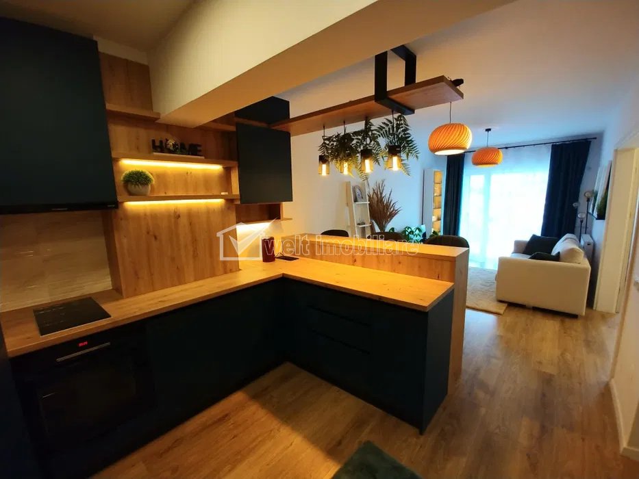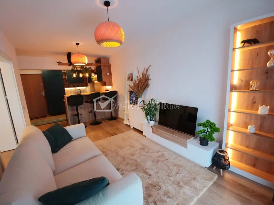 Characteristics Property type Apartment Rooms number 2 Kitchens number 1 Bathrooms number 1 Terraces No. 1 Parking yes Build area 63 m2 Ussefull area 43 sqm Divided Semidecomandat Comfort Marit Floor 3/11 Build with Brick Apartment Description We offer for rent a modern and welcoming 2-room apartment, located in the Gheorgheni neighborhood, in the Viva City residential complex, one of the most sought-after areas in Cluj-Napoca. The property benefits from an excellent location, right next to Iulius Mall, Iulius Park and the artificial lake, offering quick access to multiple points of interest: Gheorgheni Sports Park, supermarkets, schools, kindergartens, faculties and public transport. Property details: - Usable area: 43 sq m - Terrace: 12 sq m, overlooking the lake and the inner courtyard Compartment: living room with open space kitchen, bedroom, bathroom, terrace 3rd floor, in a new building, with elevator Bright orientation, very well insulated and airy apartment The apartment is fully furnished and equipped with quality appliances (Bosch, Whirlpool, LG), furniture with generous storage spaces and ambient lighting for increased comfort. The heating is centralized, through the building's central heating system, providing stability and energy efficiency. Additional advantages: - Gated residential complex, with security, access barrier and video surveillance - Common areas for relaxation and children's playground - Possibility of renting an underground parking space (for a fee) - Ideal for one person, a couple or a small family Long-term rental is desired, to responsible people who appreciate a well-maintained and comfortable space. The underground parking space can be rented separately, with an additional cost of 50 euros/month. Financial conditions can be negotiated depending on the contractual period. For more information or to schedule a viewing, please contact us. Property ID - P48713 Utilities, Finishings General utilities: Electricity, Water, DrainHeating system Imobil heating, HeatersFinishings Parquet, Sandstone, Faience, Washable Views number: 492
