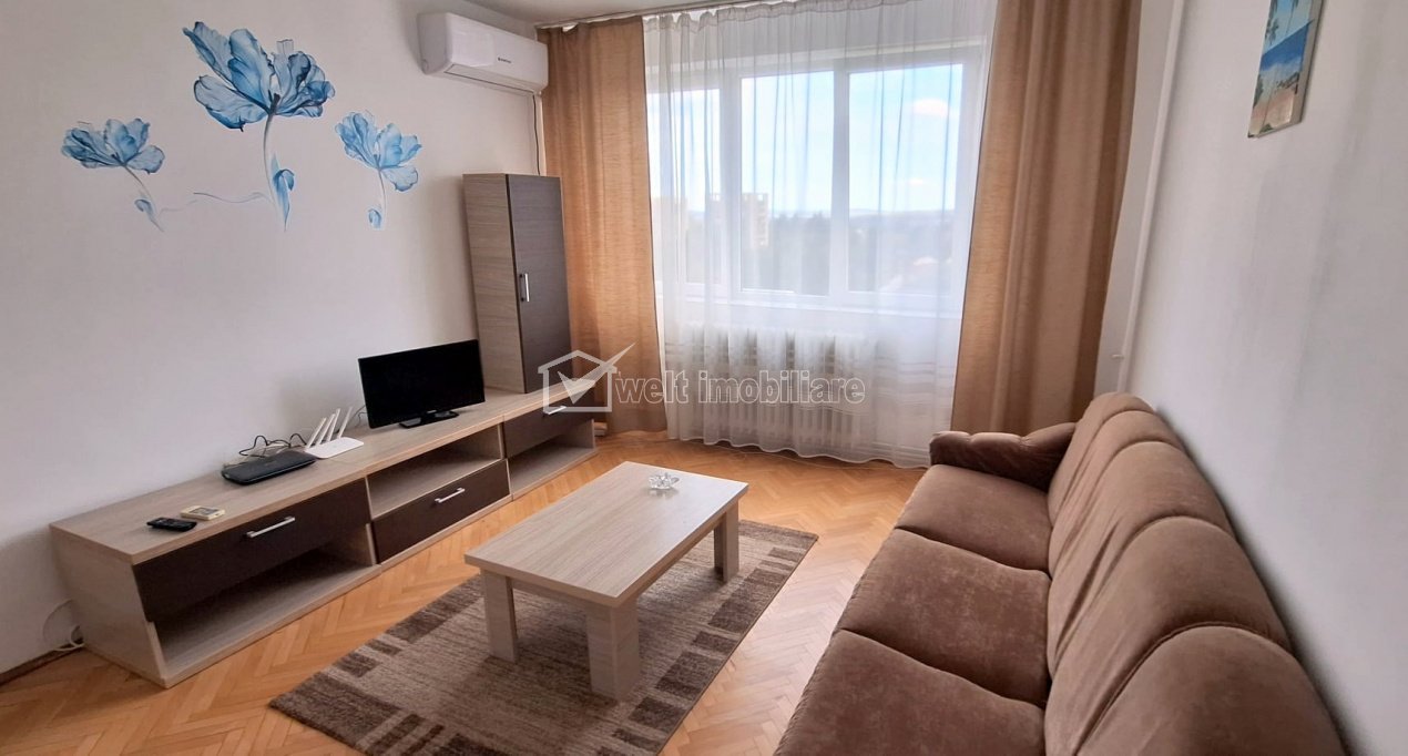Characteristics Property type Apartment Rooms number 2 Kitchens number 1 Bathrooms number 1 Balconier number 1 Parking no Build area 65 m2 Ussefull area 55 sqm Divided Semidecomandat Comfort 1 Floor 4/4 Build with Brick Apartment Description Welt Imobiliare offers for rent an apartment located in the Gheorgheni neighborhood, furnished and finished, comfort 1. The apartment is located 5 minutes walk from Iulius Mall and FSEGA, and near Transylvania College. It is located on the 4th floor of 4, has an east orientation, being bright in the morning. It has double-glazed windows, new central heating and air conditioning. The apartment is fully equipped: washing machine, vacuum cleaner, refrigerator, hood, stove, TV, etc. The usable area is 50 sq m + 5 sq m closed balcony. It is divided as follows: 2 semi-detached rooms (bedroom + living room with sofa bed), 1 kitchen, 1 bathroom with window, 1 hallway between rooms and 1 closed balcony. Although it does not have a designated parking lot, parking spaces can be found relatively easily. Pets are not excluded but not accepted. For further details or to schedule a viewing, do not hesitate to contact us. Property ID - P49472 Utilities, Finishings General utilities: Electricity, Water, Gaz, Drain, TV CableHeating system Heating, HeatersConditioning Air conditioningFinishings Parquet, Sandstone, Faience, Washable, Interior doorsEquipment Gas meters Views number: 730