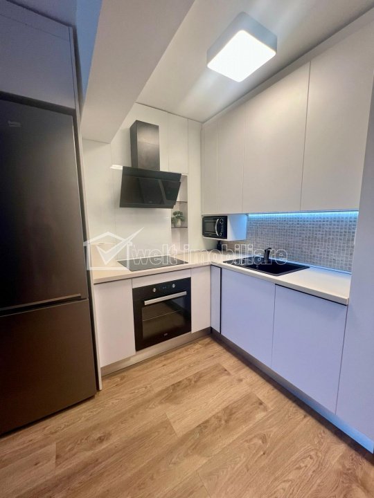 Characteristics Property type Apartment Rooms number 2 Kitchens number 1 Bathrooms number 1 Balconier number 1 Parking yes Build area 50 m2 Ussefull area 45 sqm Divided Semidecomandat Comfort 1 Floor ground floor/10 Build with Concrete Apartment Description Welt Imobiliare offers for rent a 2-room apartment, located in Viva City, Gheorgheni. The home is located on the ground floor of a new building, with a usable area of approximately 45sqm, complemented by a generous garden terrace. The partitioning is efficiently thought out and includes: - 1 living room equipped with an extendable sofa, dining area and exit to the garden. - 1 double bedroom, modernly furnished with wardrobe and office - 1 modern bathroom with bathtub - spacious hallway The apartment is rented fully furnished, equipped with modern and quality appliances according to the photos. In addition, it benefits from a parking space included in the price. Contact us for more information or to schedule a viewing! Property ID - P50298 Utilities, Finishings General utilities: Electricity, Water, Gaz, DrainHeating system Imobil heating, HeatersFinishings Parquet, Sandstone, Faience, Washable Views number: 1554