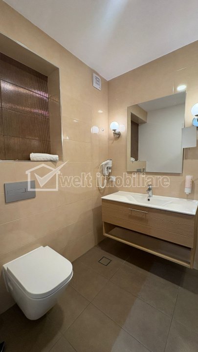 + 8 + 5 Characteristics Property type Apartment Rooms number 2 Kitchens number 1 Bathrooms number 1 Balconier number 1 Parking yes Build area 60 m2 Ussefull area 55 sqm Divided Semidecomandat Comfort 1 Floor 2/5 Build with Concrete Build year 2017 Apartment Description Welt Imobiliare offers for rent a 2-room apartment located in the Buna Ziua neighborhood, Calea Turzii street area. The apartment has an area of 55 square meters, is semi-detached, with an open space living room with kitchen, bedroom, bathroom, hallway and a 7 square meter balcony. It has luxury finishes, a spacious living room, sofa, smart TV, a kitchen with dining area, electric stove and oven, hood, refrigerator, dishwasher, coffee maker and air conditioning, a bedroom with a double bed and a dressing room, a bathroom with shower and a balcony. The apartment has its own central heating. The price includes bed linen that is changed once a week plus a general/weekly cleaning. It is rented fully furnished and equipped and includes an underground parking space in the price. The guarantee for this apartment is only 200 euros. For more details, do not hesitate to contact us. Property ID - P52915 Utilities, Finishings General utilities: Electricity, Water, Gaz, DrainHeating system Heating, HeatersConditioning Air conditioningFinishings Parquet, Sandstone, Faience, WashableEquipment Gas meters Views number: 93
