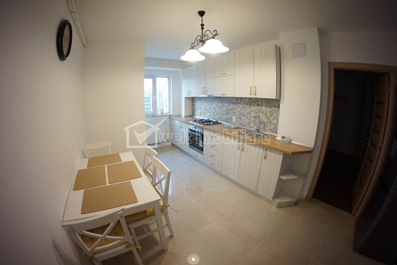 Characteristics Property type Apartment Rooms number 2 Kitchens number 1 Bathrooms number 1 Balconier number 1 Parking no Build area 60 m2 Ussefull area 50 sqm Divided Decomandat Comfort 1 Floor 8/8 Build with Brick Build year 1990 Apartment Description Real estate Agency Welt Imobiliare is offering for rent apartment with 2 rooms, located in Cluj-napoca, zone Marasti. The apartment comfort 1 decomandat situated in floor 8 in a bloc with 8 floors, has 1 kitchen, 1 bathroom , 1 balcony .The apartment is finisat has parquet, sand stone, washable walls, heat station, gas counters. Among finishing there are: pereti (vopsea lavabila), podele (parchet, gresie), ferestre cu geam termopan (pvc), usa intrare (metal) Among equipment we are mentioning: bucatarie (mobilata, utilata), contorizare (apometre, contor gaz), mobilat (complet), dotari imobil (interfon, lift) Property ID - P8027 Utilities, Finishings General utilities: Electricity, Water, Gaz, DrainHeating system Heating, HeatersConditioning Air conditioningFinishings Parquet, Sandstone, WashableEquipment Gas meters Views number: 354