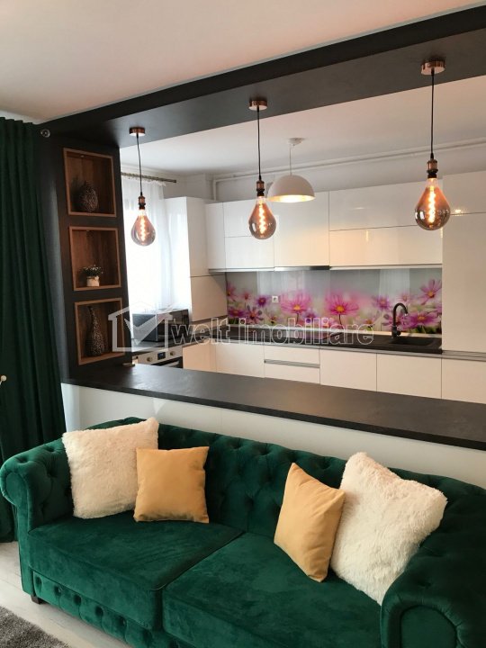 Apartment 2 rooms for rent in Cluj-napoca, zone Marasti Cluj-Napoca, Marasti 2 rooms • 58 sqm • 1 bathroom • floor 6/11 • decomandatfinisat • mobilat lux rent price €800/month + 11 + 8 Characteristics Property type Apartment Rooms number 2 Kitchens number 1 Bathrooms number 1 Balconier number 1 Parking yes Build area 75 m2 Ussefull area 58 sqm Divided Decomandat Comfort 1 Floor 6/11 Build with Concrete Build year 2019 Apartment Description We offer for rent an apartment located in the immediate vicinity of The Office offices, BRD Mărăști area. Every detail is designed specifically to ensure a luxurious lifestyle for the tenant. Divided into a living room with kitchen and dining area, bedroom, bathroom, the apartment has all the amenities necessary for a comfortable life: 2x Samsung Smart TVs in the bedroom and living room (138 cm), air conditioning, Samsung refrigerator with freezer, Whirlpool dishwasher, Samsung electric oven with catalytic cleaning and advanced functions, Gorenje induction hob, extractor hood, Samsung microwave oven, Whirlpool washing machine, iron and ironing board, LED bulbs with dimmer, own central heating with underfloor heating and very good insulation, intercom with room. The balcony offers a superb panoramic view. Being furnished with two comfortable chairs and a coffee table, the balcony is the perfect place for quiet mornings or relaxing evenings. The living room includes a very comfortable and extendable Chesterfield sofa. The furniture layout and select colors provide a touch of elegance to the living room. The furniture is of high quality. The bathroom is finished in neutral tones, with Roca furniture and an anti-splash shower cabin. All finishes are of superior quality. The parking space is located in the underground garage of the building. The location is excellent, with quick access to public transportation, being close to Lidl, pharmacies, stores, fitness centers, restaurants, banks, cafes and other amenities. We promise you an exceptional living experience. Property ID - P51574 Utilities, Finishings General utilities: Electricity, Water, Gaz, DrainHeating system Heating, Floor HeatingConditioning Air conditioningFinishings Parquet, Sandstone, Faience, Washable, Interior doors Views number: 373