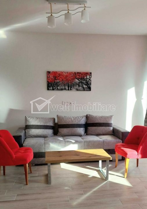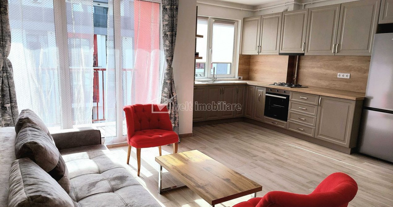 Characteristics Property type Apartment Rooms number 2 Kitchens number 1 Bathrooms number 1 Balconier number 1 Parking yes Build area 81 m2 Ussefull area 58 sqm Divided Decomandat Comfort Marit Floor 3/4 Build with Brick Apartment Description A modern 2-room detached apartment for rent, located in a quiet and appreciated area, with green spaces, in Floresti, with quick access to the city center, means of transport, shops, pharmacies and other urban facilities. The apartment has a usable area of 58 sq m, plus 2 balconies of 6 sq m each, which offer a superb view of the neighborhood. The building in which it is located is new and very well maintained. The partitioning is efficient and includes a spacious living room, a modern kitchen, an airy bedroom, a bathroom, a dressing room and a closet. The apartment benefits from high-quality finishes and a modern design, being fully furnished and equipped with new appliances. It has its own central heating system, with underfloor heating, which ensures optimal thermal comfort, and a parking space included in the price, offering easy and safe access. The home is available for immediate move-in and offers a comfortable and refined lifestyle, being suitable for active individuals, professionals or couples who want a modern home. For more information or to schedule a viewing, do not hesitate to contact us. Property ID - P48424 Utilities, Finishings General utilities: Electricity, Water, Gaz, DrainHeating system Heating, Floor HeatingConditioning Air conditioningFinishings Parquet, Sandstone, Faience, Washable Views number: 674