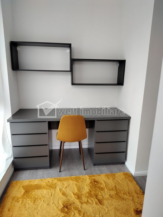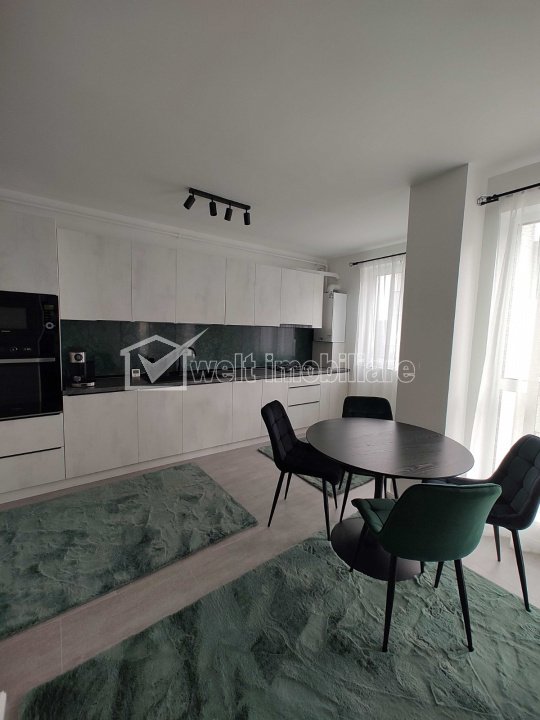 Characteristics Property type Apartment Rooms number 2 Kitchens number 1 Bathrooms number 1 Balconier number 1 Parking no Ussefull area 53 sqm Divided Semidecomandat Comfort 1 Floor 1/4 Apartment Description We offer for rent a modern apartment, located in Floresti, in a new 3-story building, equipped with an elevator. The apartment is located on the 1st floor and has an area of 53 sq m, plus a spacious balcony. Partitioning: -Open space kitchen with dining area and two storage areas, with direct access to the balcony -Bedroom with dressing room and office, also with access to the balcony -Modern bathroom with shower Equipment: -Built-in appliances: dishwasher, washing machine, oven, hob, etc. -Intercom for access to the block -Closed underground parking space, with automated door (remote control) Other details: -Second rental -Pets not allowed -Minimum rental period: 12 months The apartment is ideal for a person or a couple who wants comfort, peace and quick access to areas of interest in Cluj and Floresti. For more information or to schedule a viewing, do not hesitate to contact us. Property ID - P49934 Utilities, Finishings General utilities: Electricity, Water, Gaz, Drain Views number: 693