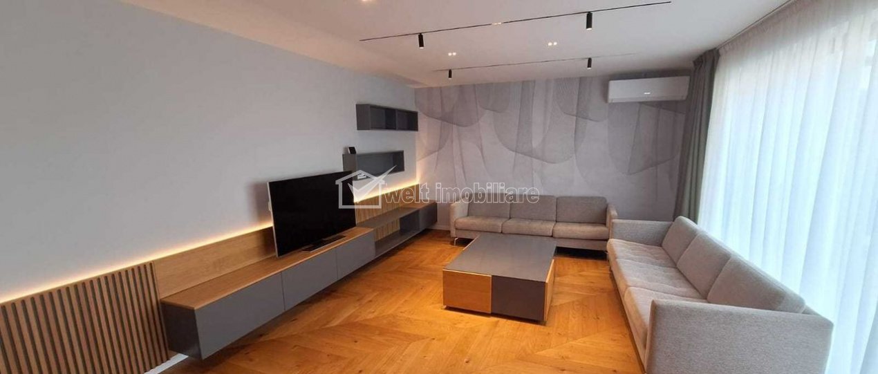 Characteristics Property type Apartment Rooms number 3 Kitchens number 1 Bathrooms number 3 Terraces No. 1 Parking yes Build area 128 m2 Ussefull area 95 sqm Divided Semidecomandat Floor 8/9 Apartment Description Welt Imobiliare offers for rent a 3-room semi-detached penthouse apartment, located in the Buna ziua neighborhood. The home is located on two levels, with an internal staircase, located on the 8th and 9th floors, respectively, of a new building, with a usable area of approximately 95sqm, complemented by a terrace of approximately 14sqm. The partitioning is efficiently thought out and includes: First level - 1 kitchen, fully equipped and dining area - 1 generous living room, with sofa, chest of drawers and TV - 1 service bathroom - storage space under the stairs - access to the balcony Second level - 2 bedrooms, equipped with a double bed - 2 private bathrooms - dressing area In addition, the building is at the first rental and has an underground parking included in the price. The penthouse is located in a new building, offering generous spaces, natural light, as well as modern amenities, including air conditioning in each room. It is located in a quiet area with a park and a playground for children. Contact us for more information or to schedule a viewing! Property ID - P50075 Utilities, Finishings General utilities: Electricity, Gaz, DrainConditioning Air conditioningFinishings Parquet, Sandstone, Faience, Washable, Interior doors Views number: 518