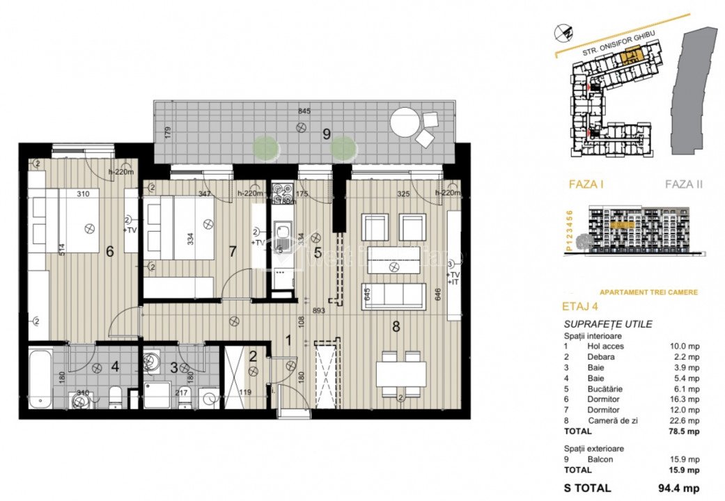 Characteristics Property type Apartment Rooms number 3 Kitchens number 1 Bathrooms number 2 Balconier number 1 Garrages number 1 Parking no Build area 95 m2 Ussefull area 78.5 sqm Divided Semidecomandat Comfort 1 Floor 4/6 Build with Brick Build year 2021 Apartment Description Real estate Agency Welt Imobiliare is offering for rent apartment with 3 rooms, located in Cluj-napoca, zone Centru. The apartment comfort 1 semidecomandat situated in floor 4 in a bloc with 6 floors, has 1 kitchen, 2 bathrooms , 1 balcony .The apartment is finisat has parquet, sand stone, faience, washable walls, interior doors, TV cable. Among finishing there are: izolatii termice (bloc izolat termic), pereti (vopsea lavabila, faianta), podele (parchet, gresie), ferestre cu geam termopan (pvc), usa intrare (metal), usi interior (lemn) Among equipment we are mentioning: bucatarie (mobilata, utilata), contorizare (apometre, contor caldura), mobilat (nemobilat), dotari imobil (videointerfon, lift, spatii agrement, curte comuna) Property ID - P33382 Utilities, Finishings General utilities: Electricity, Water, Drain, TV CableHeating system Imobil heating, Floor HeatingConditioning Air conditioningFinishings Parquet, Sandstone, Faience, Washable, Interior doors Views number: 2125