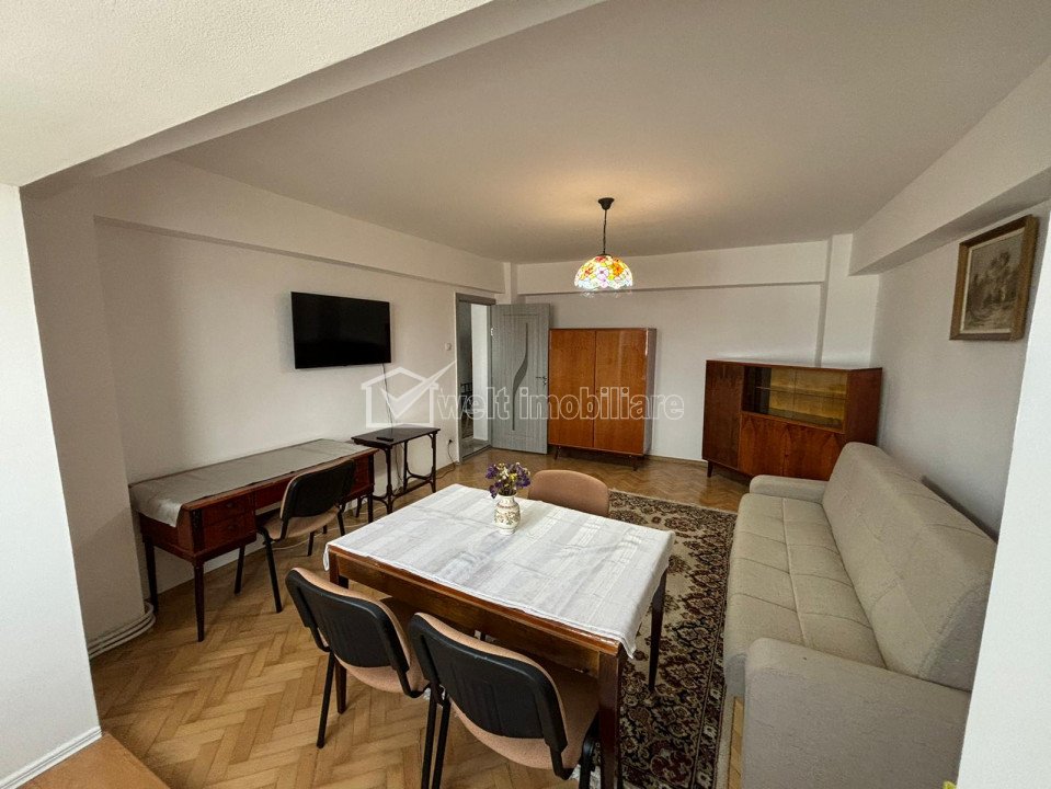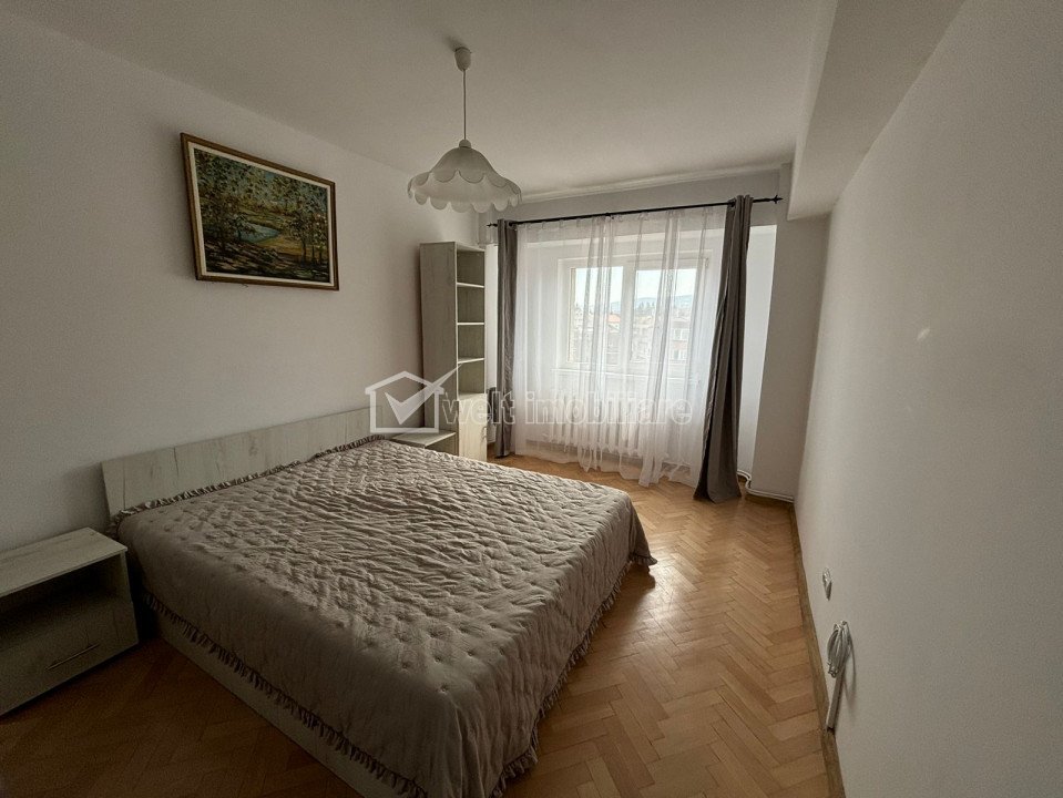 Characteristics Property type Apartment Rooms number 3 Kitchens number 1 Bathrooms number 2 Parking no Build area 108 m2 Ussefull area 90 sqm Divided Decomandat Comfort Marit Floor 4/7 Build with Concrete Apartment Description We offer for rent a 3-room apartment, detached, spacious and bright, located in the Cipariu Square area! The apartment is furnished and finished in a modern way, so it leaves a very good impression. It has 90 useful square meters, divided as follows: - 3 bedrooms; - 2 bathrooms; - 1 hall; - 1 kitchen: - modified balcony, built into the room. It is located on the 4th floor of a 7-story building, equipped with an elevator. It has a beautiful view of the city. In the vicinity of the building there are: - George Cosbuc and Ghoerghe Sincai National College; - National Opera from Cluj-Napoca; - Faculty of Law; - The public transport station, but also many other objectives of public interest. For more details and viewings, we are waiting for you. Property ID - P43902 Utilities, Finishings General utilities: Electricity, Water, Gaz, Drain, PhoneHeating system Heating, HeatersConditioning Air conditioningFinishings Parquet, Sandstone, Faience, Washable, Interior doorsEquipment Gas meters Views number: 858