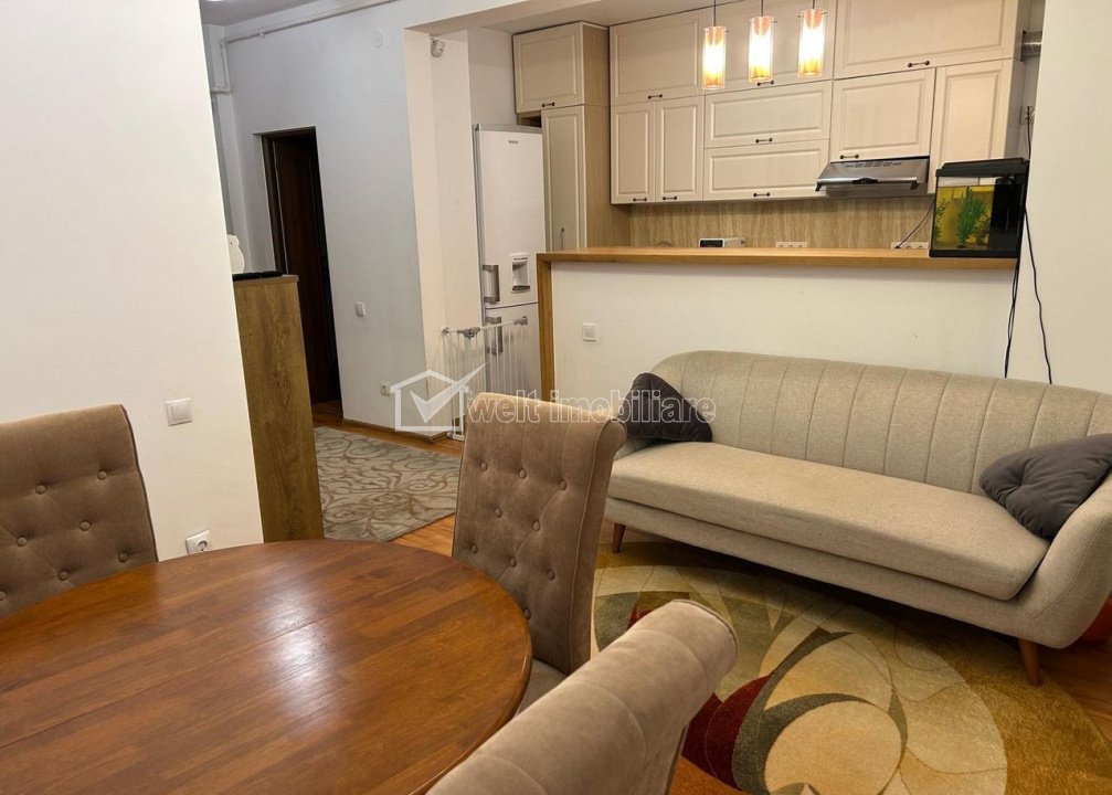 Apartment 3 rooms for rent in Cluj-napoca, zone Centru Cluj-Napoca, Centru 3 rooms • 73 sqm • 1 bathroom • floor 1/4finisat • mobilat complet rent price €750/month + 7 + 4 Characteristics Property type Apartment Rooms number 3 Kitchens number 1 Bathrooms number 1 Balconier number 1 Terraces No. 1 Parking no Build area 87 m2 Ussefull area 73 sqm Floor 1/4 Build with Brick Apartment Description Welt Imobiliare presents for rent a semi-detached 3-room apartment, which offers a pleasant and well-maintained space, in the Piata Mihai Viteazu area. The apartment is located on the 1st floor of a new building, with a usable area of approximately 73 sq m. The layout was designed as follows: - 1 bedroom with double bed and wardrobe - 1 room with sofa and desk - 1 open space living room with kitchen, fully equipped with dining area - 1 modern bathroom with walk-in shower - hallway In addition, the apartment benefits from a 7 sq m balcony and a 15 sq m terrace. An underground parking space can be rented for 50 euros/month. Contact us for additional information or to arrange a viewing! Property ID - P52603 Utilities, Finishings General utilities: Electricity, Gaz, DrainHeating system Heating, HeatersConditioning Air conditioningFinishings Parquet, Sandstone, Faience, Washable, Interior doors Views number: 55