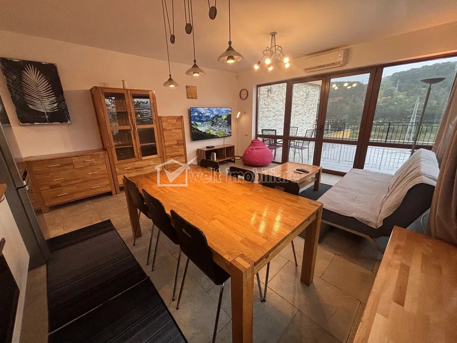 Apartment 3 rooms for rent in Cluj-napoca, zone Manastur Cluj-Napoca, Manastur 3 rooms • 77 sqm • 1 bathroom • floor 2/5 • semidecomandatfinisat • mobilat complet rent price €590/month + 7 + 4 Characteristics Property type Apartment Rooms number 3 Kitchens number 1 Bathrooms number 1 Balconier number 1 Terraces No. 1 Parking yes Build area 89 m2 Ussefull area 77 sqm Divided Semidecomandat Comfort 1 Floor 2/5 Build with Concrete Apartment Description Welt Imobiliare presents for rent a 3-room semi-detached apartment, which offers a pleasant and well-maintained space, in the VIVO area. The apartment is located on the 2nd floor of a new and airy building with 2 apartments per level, with a usable area of approximately 77 sq m. It benefits from a 40 sq m terrace with a beautiful view. The partitioning was designed as follows: - 2 bedrooms with double bed and wardrobe - 1 open space living room with kitchen, fully equipped with dining area with dishwasher - 1 modern bathroom with window - hallway In addition, the apartment also benefits from a parking space. For more details, do not hesitate to contact us. Property ID - P52857 Utilities, Finishings General utilities: Electricity, Water, Gaz, DrainHeating system Heating, HeatersFinishings Parquet, Sandstone, Faience, WashableEquipment Gas meters Views number: 65