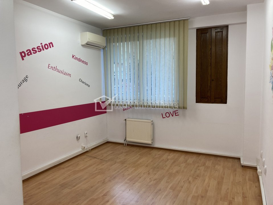 Commercial space for rent in Cluj-napoca, zone Centru Cluj-Napoca, Centru 3 rooms • 151 sqm rent price negotiable €1,510/month 10 € /m2 + 9 + 6 Rented Characteristics Space type Commercial Space Ussefull area 151 sqm Rooms No. 3 Bathrooms 2 Terraces 1 Parking No. -- Garages No. -- Imobil type cladire de birouri Floor ground floor/2 High regim 2E Building from Brick Build year -- Build area 175 m2 Yard area -- Utilities General utilities: Electricity, Water, Gaz, Drain, TV CableHeating system: HeatersConditioning: Air conditioning Finishings: Parquet, Sandstone Views number: 2202 Updated: 2021-12-02 13:51:03
