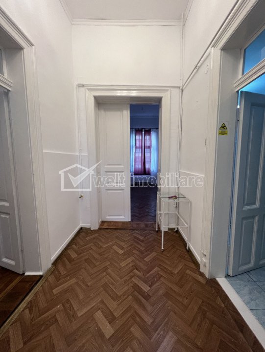 Office for rent in Cluj-napoca, zone Centru Cluj-Napoca, Centru 4 rooms • 104 sqm rent price negotiable €1,070/month 10 € /m2 + 9 + 6 Characteristics Space type Office Ussefull area 104 sqm Rooms No. 4 Bathrooms 2 Terraces 1 Parking No. -- Garages No. -- Imobil type casa/vila Offices class -- Floor ground floor/2 High regim 2E Building from Brick Build year -- Build area 115 m2 Yard area 20 m2 Utilities General utilities: Electricity, Water, Gaz, Drain, TV CableHeating system: Heating, Heaters Finishings: Parquet, Sandstone Views number: 21 Updated: 2026-04-28 10:04:50
