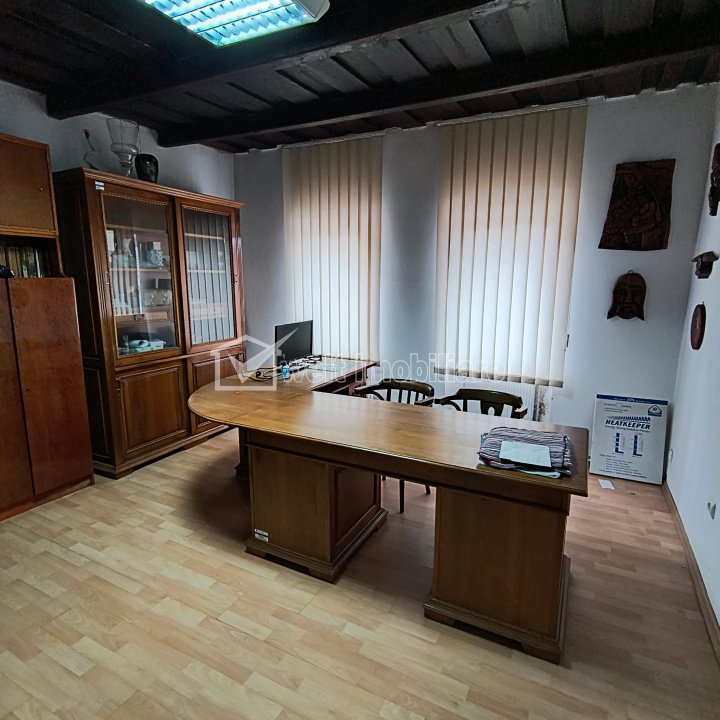 Characteristics Space type Office Ussefull area 270 sqm Rooms No. 6 Bathrooms 2 Terraces 2 Parking No. -- Garages No. -- Imobil type -- Offices class -- Floor /1 High regim 1E Building from Brick Build year -- Build area 324 m2 Yard area -- Utilities General utilities: Electricity, Water, Gaz, DrainHeating system: Heating, Heaters Finishings: Parquet, Sandstone Views number: 147 Updated: 2025-11-18 14:49:54