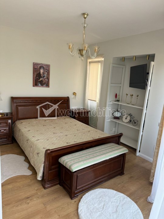 House 5 rooms for rent in Cluj-napoca, zone Andrei Muresanu Cluj-Napoca, Andrei Muresanu 5 rooms • 110 sqm • 300 m2 landmobilat complet rent price €2,000/month + 17 + 14 Characteristics Property type House Rooms number 5 Kitchens number 1 Bathrooms number 3 Balconier number 2 Terraces No. 2 Parking yes Cellar no Garden no Ussefull area 110 sqm Build area 132 sqm Land area 300 m2 Front 20 m Floor 2 Struct. strength Brick Finishings: Parquet, Sandstone, Faience, Interior doors