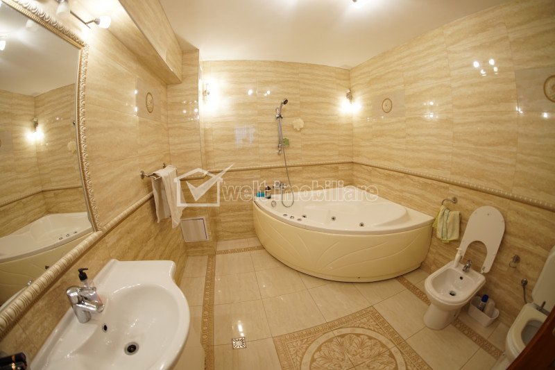 House 5 rooms for rent in Cluj-napoca, zone Manastur Cluj-Napoca, Manastur 5 rooms • 300 sqm • 900 m2 landmobilat complet rent price negotiable €2,500/month + 18 + 15 Rented Characteristics Property type House Imobil type Two-ply Rooms number 5 Kitchens number 1 Bathrooms number 3 Balconier number 4 Terraces No. 1 Garrages number 1 Parking yes Cellar no Garden yes Ussefull area 300 sqm Build area 380 sqm Land area 900 m2 Front 20 m Floor 1 Struct. strength Brick Build year 2006 Finishings: Parquet, Sandstone, Faience, TV