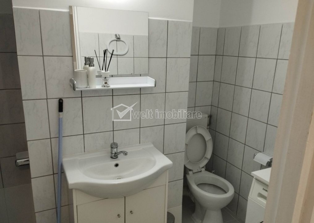 + 7 + 4 Rented Characteristics Property type Studio Rooms number 1 Kitchens number 1 Bathrooms number 1 Balconier number 1 Parking no Build area 43 m2 Ussefull area 36 sqm Divided Semidecomandat Comfort Marit Floor 3/8 Studio Description Welt Imobiliare offers for rent a modern 36 sqm studio apartment, located on Tabacarilor Street, in the immediate vicinity of Clujana Hospital and Clujana Base. The property stands out for its quality finishes, an impressive 60 sqm terrace and an excellent location, ideal for those who want comfort and quick access to the main points of interest in the city. • Usable area: 36 sq m • Spacious 60 sq m terrace, perfect for relaxing or spending time outdoors • Located on the 3rd floor of a well-maintained building • Fully furnished and equipped, equipped with TV, modern appliances and quality furniture • Bathroom • Very well-maintained property, ready to be inhabited immediately • Small pets are accepted • Quiet and safe area, with easy access to public transportation, the bus station is just a 5-minute walk away • Nearby there are supermarkets, pharmacies, restaurants and other important facilities This studio perfectly combines comfort and accessibility, being ideal for an active person, a young couple or a student who wants a modern home in a convenient area of Cluj-Napoca. For more details, we are at your disposal. Property ID - P50770 Utilities, Finishings General utilities: Electricity, Water, Gaz, DrainHeating system District heating, HeatersFinishings Parquet, Sandstone, Faience, WashableEquipment Gas meters Views number: 508