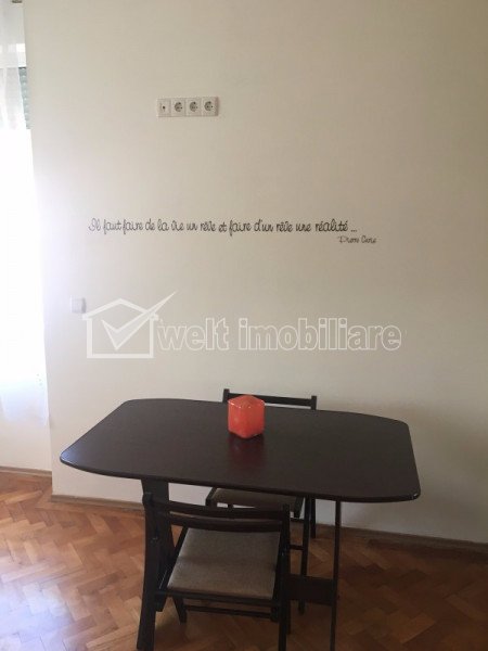 Studio for rent in Cluj-napoca, zone Centru Cluj-Napoca, Centru 1 room • 22 sqm • 1 bathroom • floor 2/2 • decomandatfinisat • mobilat complet rent price €370/month + 8 + 5 Rented Exclusivity Characteristics Property type Studio Rooms number 1 Kitchens number 1 Bathrooms number 1 Parking no Build area 25 m2 Ussefull area 22 sqm Divided Decomandat Comfort 1 Floor 2/2 Studio Description Real estate Agency Welt Imobiliare is offering for rent studio located in Cluj-Napoca, zone Centru. Studio comfort 1, decomandat situated in floor 2 and it has 1 kitchen, 1 bathroom The studio is finisat. It has parquet, sand stone, faience, washable walls, heat station Among finishing there are: pereti (vopsea lavabila, faianta), podele (parchet, gresie), ferestre cu geam termopan (pvc) Among equipment we are mentioning: mobilat (complet), dotari imobil (interfon) Property ID - P5083 Utilities, Finishings General utilities: Electricity, Water, Gaz, DrainHeating system Heating, HeatersFinishings Parquet, Sandstone, Faience, Washable Views number: 1580