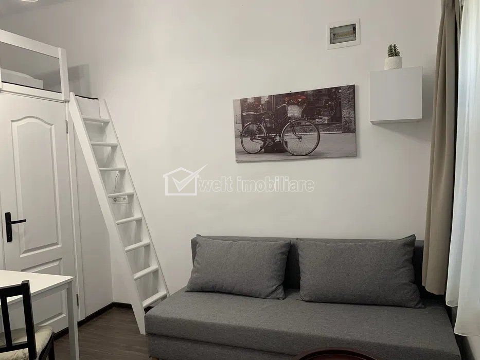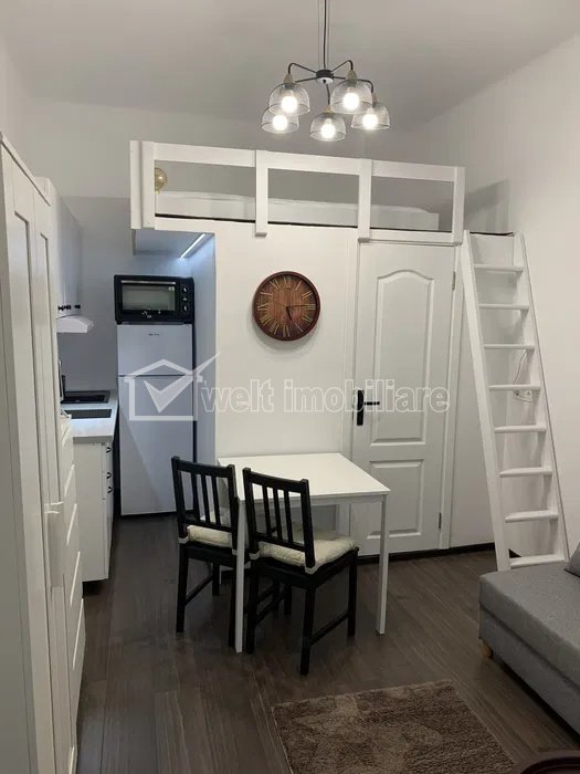 Characteristics Property type Studio Rooms number 1 Kitchens number 1 Bathrooms number 1 Parking no Build area 28 m2 Ussefull area 24 sqm Divided Semidecomandat Comfort Marit Floor 1/1 Studio Description We offer for rent a modern studio apartment, located on Avram Iancu Street, in the center of Cluj-Napoca, just a few steps from the most important points of interest: shops, cafes, universities and public transport stations. The studio has an area of 24 sq m and is located on the 1st floor of a well-maintained building. The space is efficiently partitioned and includes a sleeping niche arranged in the upper area, which allows the separation of the rest area from the living area. It is rented fully furnished and equipped, exactly as in the photos. It has its own central heating and is ideal for students, young professionals or people who want to live in the city center. The home combines comfort and functionality in one of the most sought-after areas of Cluj. For more details or to schedule a viewing, we invite you to contact us. Property ID - P49082 Utilities, Finishings General utilities: Electricity, Water, Gaz, DrainHeating system Heating, HeatersFinishings Parquet, Sandstone, Faience, WashableEquipment Gas meters Views number: 769