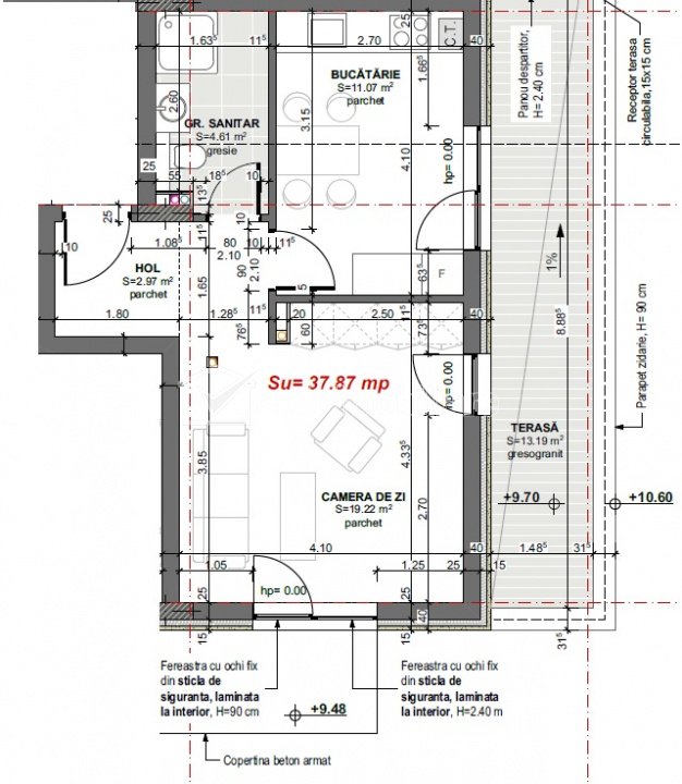 + 2 Characteristics Property type Apartment Rooms number 1 Kitchens number 1 Bathrooms number 1 Balconier number 1 Terraces No. 1 Parking no Build area 45 m2 Ussefull area 38 sqm Divided Decomandat Comfort 1 Floor 2/2 Build with Concrete Build year 2025 Apartment Description Detached 1-room apartment, Usable area 38sqm + terrace 13sqm. Welt imobiliare presents for sale new apartments with 1 -2 and 3 rooms, located in a new building under construction. Construction D+P+2E, small and intimate residence with only 15 apartments. Building built on a reinforced concrete structure, 25cm brick walls, insulated with basalt wool and ventilated aluminum facade. The apartments are delivered semi-finished, with their own Thermal Power Plant and underfloor heating, tripan windows, plastered walls + putty + 1 white washable. Outdoor parking space 3,000 eur, basement parking 5,000 eur Property ID - P47767 Utilities, Finishings General utilities: Electricity, Water, Gaz, Drain, TV CableHeating system Heating, Floor HeatingFinishings WashableEquipment Gas meters Views number: 1103 Updated: 2025-11-07 13:41:08