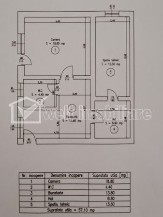 Characteristics Property type Apartment Rooms number 1 Kitchens number 1 Bathrooms number 1 Parking no Build area 68 m2 Ussefull area 57 sqm Divided Semidecomandat Comfort 1 Floor semi-basement/1 Build with Brick Build year 2012 Apartment Description Welt Imobiliare offers for purchase a detached apartment located in Baciu, in the Viilor street area. The block is of villa type and was structured as follows: semi-basement + ground floor + 1st floor + attic. It has a usable area of 57 sq m, is located in the basement and is divided as follows: -> Room; -> Kitchen; -> Hall; -> Technical Space Separately, an underground parking space can also be purchased at the price of 8000E negotiable. For any details or viewings, please contact us with confidence. Property ID: P50977 Property ID - P50977 Utilities, Finishings General utilities: Electricity, Water, Gaz, DrainHeating system Heating, HeatersFinishings Parquet, SandstoneEquipment Gas meters Views number: 479 Updated: 2025-11-13 10:30:12