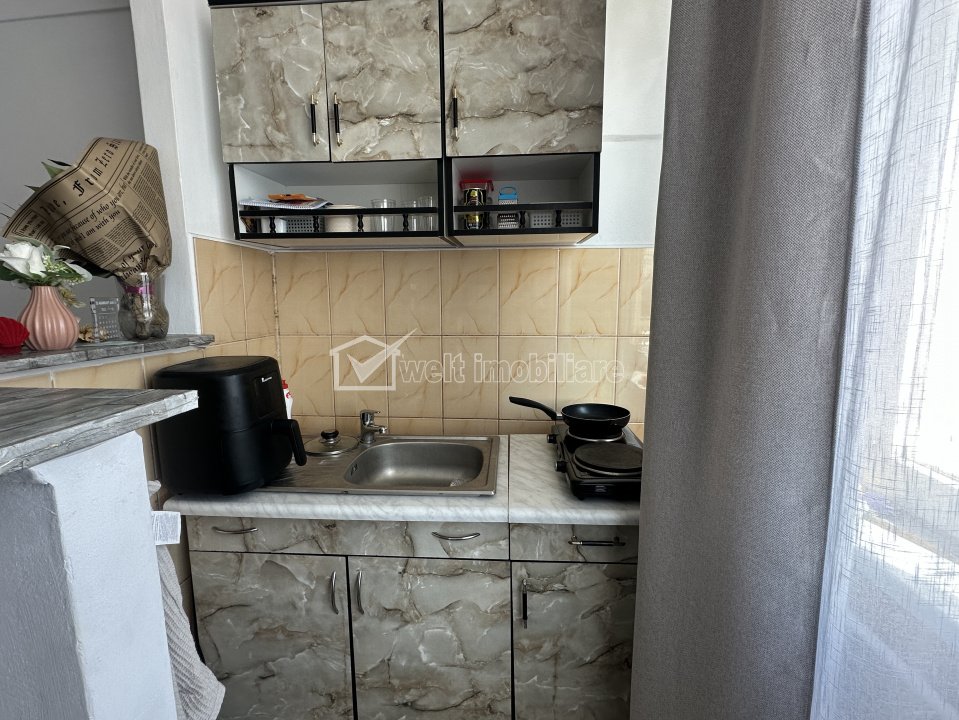 Characteristics Property type Apartment Rooms number 1 Kitchens number 1 Bathrooms number 1 Parking no Build area 21 m2 Ussefull area 18 sqm Divided Semidecomandat Comfort 3 Floor 4/4 Build with Brick Build year 1980 Apartment Description Welt Imobiliare is pleased to offer for sale a 1-room apartment located in a building in the Iris neighborhood, Cluj-Napoca. The apartment is located on the 4th floor of a 4-story building and has a usable area of 18 sq m, the studio has a kitchen and bathroom, it should be noted that the bathroom is not included in the CF, the studio also has a storage room in the basement. It is the perfect choice for investment, the studio can be purchased with tenant takeover. Contact us with confidence for more details! Property ID - P54344 Utilities, Finishings General utilities: Electricity, Water, Gaz, DrainHeating system HeatingFinishings Parquet, Sandstone, WashableEquipment Gas meters Views number: 33 Updated: 2026-04-06 14:58:24