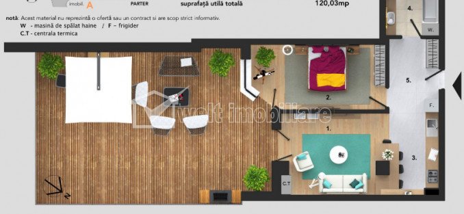 Characteristics Property type Apartment Rooms number 2 Kitchens number 1 Bathrooms number 1 Terraces No. 1 Garrages number 1 Parking yes Build area 132 m2 Ussefull area 53 sqm Divided Semidecomandat Comfort 1 Floor ground floor Build with Brick Build year 2019 Apartment Description Real estate Agency Welt Imobiliare is offering for sale apartment with 2 rooms, located in Cluj-napoca, zone Buna Ziua. The apartment comfort 1 semidecomandat, has 1 kitchen, 1 bathroom , parking. has heat station, gas counters. Among finishing there are: izolatii termice (bloc izolat termic), ferestre cu geam termopan (pvc), usa intrare (metal) Among equipment we are mentioning: contorizare (apometre, contor gaz), mobilat (nemobilat), dotari imobil (interfon, lift) Property ID - P27645 Utilities, Finishings General utilities: Electricity, Water, Gaz, DrainHeating system Heating, Floor HeatingEquipment Gas meters Views number: 2898 Updated: 2021-08-03 11:21:47