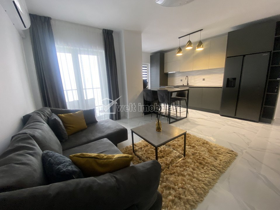 Characteristics Property type Apartment Rooms number 2 Kitchens number 1 Bathrooms number 1 Balconier number 1 Parking yes Build area 71 m2 Ussefull area 57 sqm Divided Semidecomandat Comfort 1 Floor 6/8 Build with Brick Build year 2020 Apartment Description Welt Imobiliare offers for sale a 2-room apartment located in a new residential complex, in the Buna Ziua neighborhood. The apartment is located in a very good area for living, near Calea Turzii, with quick access to all major points of interest in the city. It is located on the 6th out of 8th floor of a new building, surrounded by a lot of green space. The compartmentation is semi-detached, arranged as follows: - 1 open space living room with kitchen and exit to the balcony; - 1 bedroom; - 1 bathroom; - 1 dressing room; - 1 spacious hall. The apartment's finishes are modern and of high quality, double-glazed windows with PVC joinery, own central heating system, underfloor heating, touch switches + Livolo sockets. For your comfort, the apartment also has a generous storage space at the entrance. From the balcony opens a special panoramic view of the city. The building was built in 2020, made of brick with a concrete structure and has an intercom and an elevator. It is sold fully furnished and equipped as shown in the photos. The apartment also has two parking spaces in the underground garage. We recommend this property both for living and for investment. For more information or to schedule a viewing, do not hesitate to contact us. The Welt Real Estate team Property ID - P34493 Utilities, Finishings General utilities: Electricity, Water, Gaz, Drain, TV CableHeating system Heating, Floor HeatingFinishings Parquet, Sandstone, Faience, WashableEquipment Gas meters Views number: 2099 Updated: 2024-06-27 14:30:57
